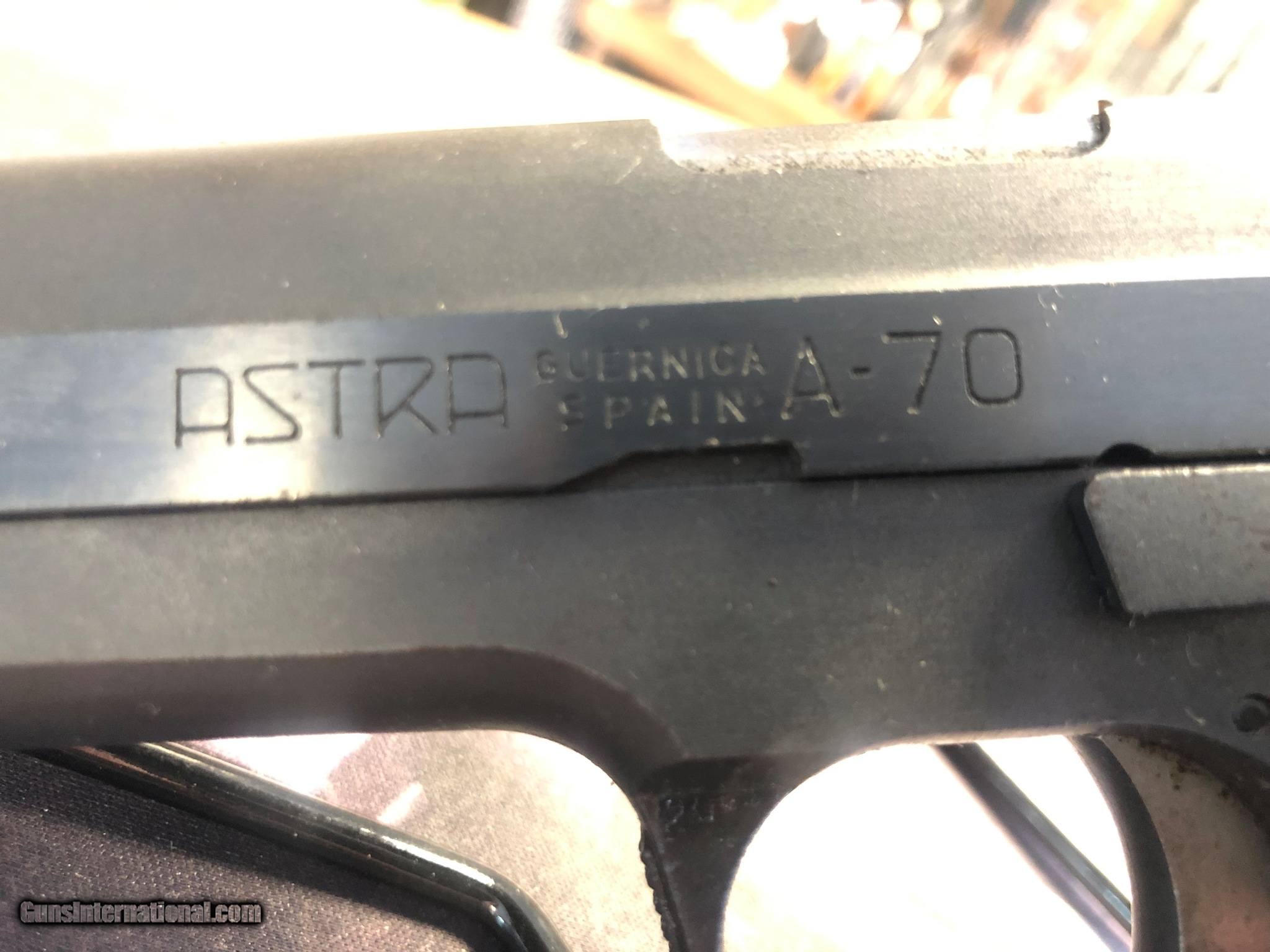 Description: Guns Listing ID: 418607 Astra A-70, 9mm, thumb safety NO BOX SOLD Manufacturer: INTERARMS Model: A70 Caliber Info: 9MM Condition: Used - Non-Certified Barrels: 3.5 BARREL Finish: BLACK |