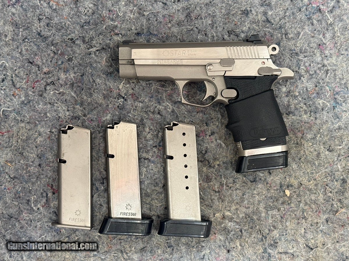 Description: Guns Listing ID: 586466 INTERARMS FIRESTAR .40 — 3.25\" BARREL; INCLUDES 4 MAGS. GOOD CONDITION: CLEAN BORE, FIXED SIGHTS, SLIM ALLOY FRAME FOR CONCEALMENT, RELIABLE FEEDING, CRISP TRIGGER, EASY DISASSEMBLY. GREAT COMPACT DEFENSIVE PISTOL; READY RANGE/CARRY. SOLD Manufacturer: INTERARMS Model: FIRESTAR Caliber Info: 40 Smith & Wesson Condition: Used - Non-Certified Barrels: 2" BARREL Action: SEMI AUTOMATIC Finish: Stainless |