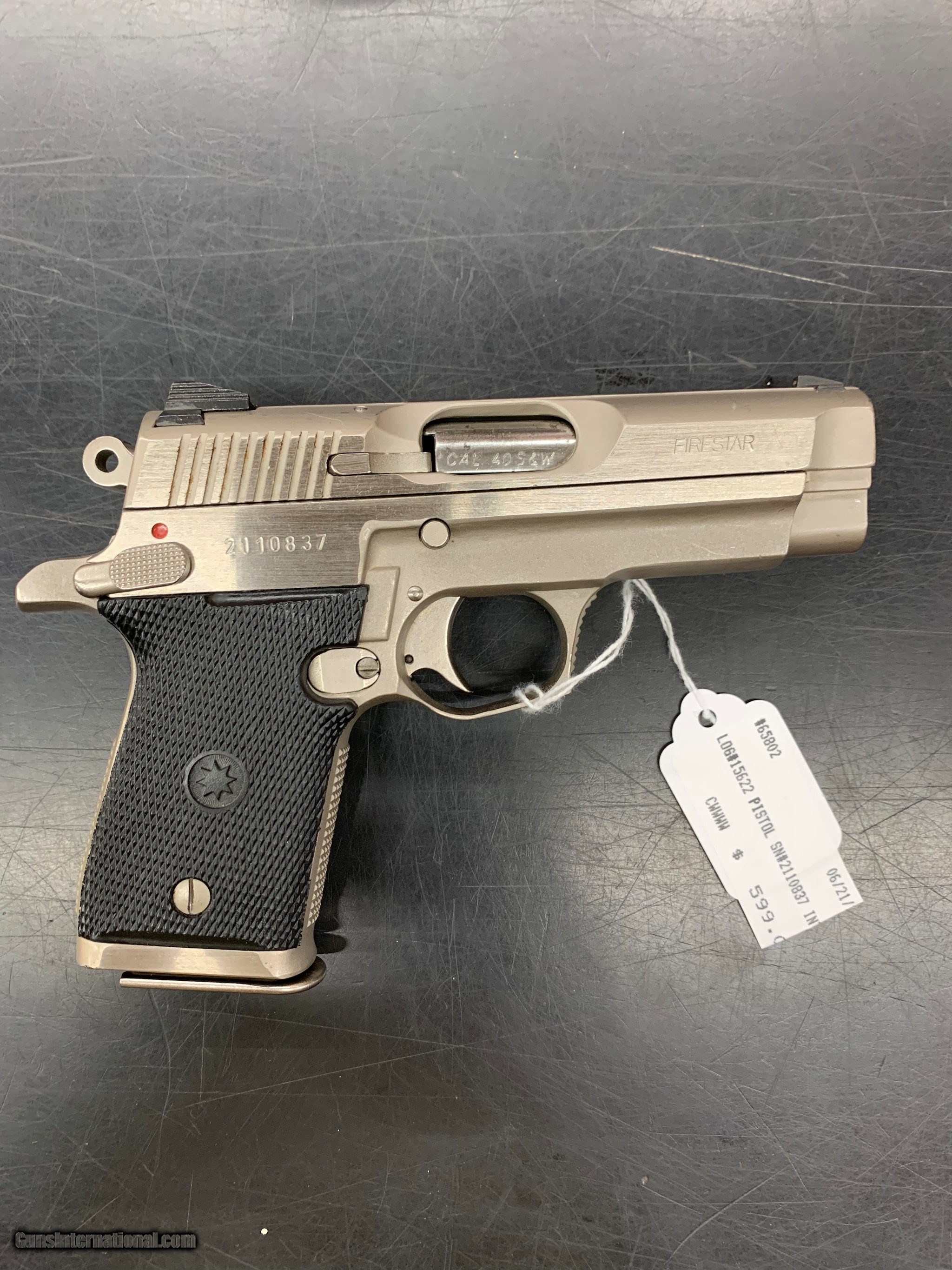 Description: Guns Listing ID: 303793 Interarms FireStar 40sw 1990-1994 Great Shooter SOLD Manufacturer: INTERARMS Model: Firestar Caliber Info: 40 S&W Condition: Used - Non-Certified Barrels: 4 BARREL Finish: STAINLESS |