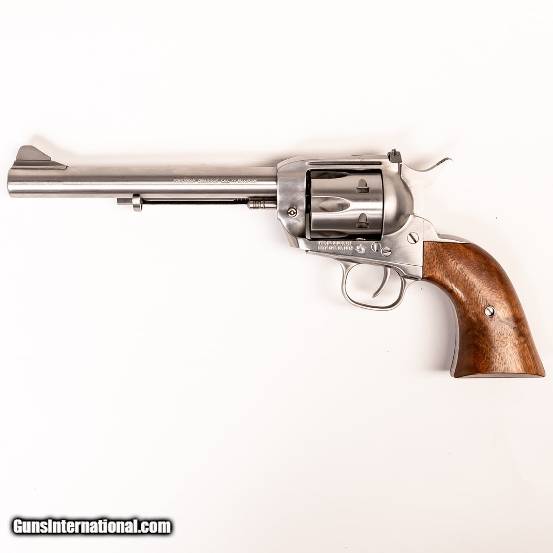 Description: Guns Listing ID: 488785 The Interarms Virginian Dragoon is a classic-looking single-action revolver. This is a Yorktown 1781-1981 special edition model. It‚‚s chambered in 44 Mag and features a 7.5\" barrel. If you‚‚re in the market for an affordable western-style handgun, this is a great option. This Virginian Dragoon includes the original box, owner‚‚s manual, and an extra set of gri SOLD Manufacturer: INTERARMS Model: VIRGINIAN DRAGOON-YORKTOWN 1781-1981 Caliber Info: .44 MAGNUM Condition: Used - Certified Barrels: 7.5 BARREL Finish: STAINLESS |