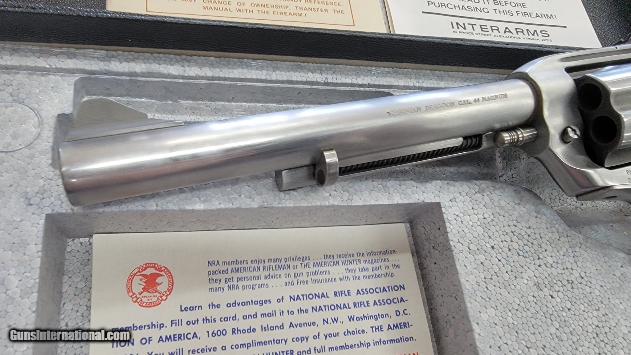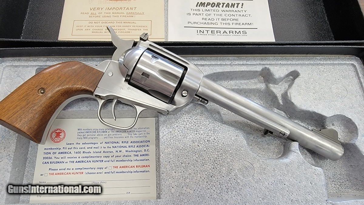 Description: Guns Listing ID: 463602 Gun in good shape, original box and paperwork included! Please see pictures! SOLD Manufacturer: INTERARMS Model: VIRGINIAN DRAGOON Caliber Info: 44 MAG Condition: Used - Non-Certified Barrels: 7.5 BARREL Finish: STAINLESS |