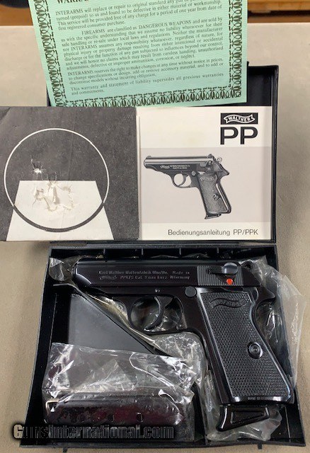 Description: A mint in the box Walther PPK/S marked 9mm Kurz which is our .380acp caliber, with original box (unlabeled) spare magazine, test targer, statement of liability, and manual. Pistol appears to be unifired and without any issues whatever. SOLD Handgun Caliber: .380 ACP (9x17mm Browning Short) |