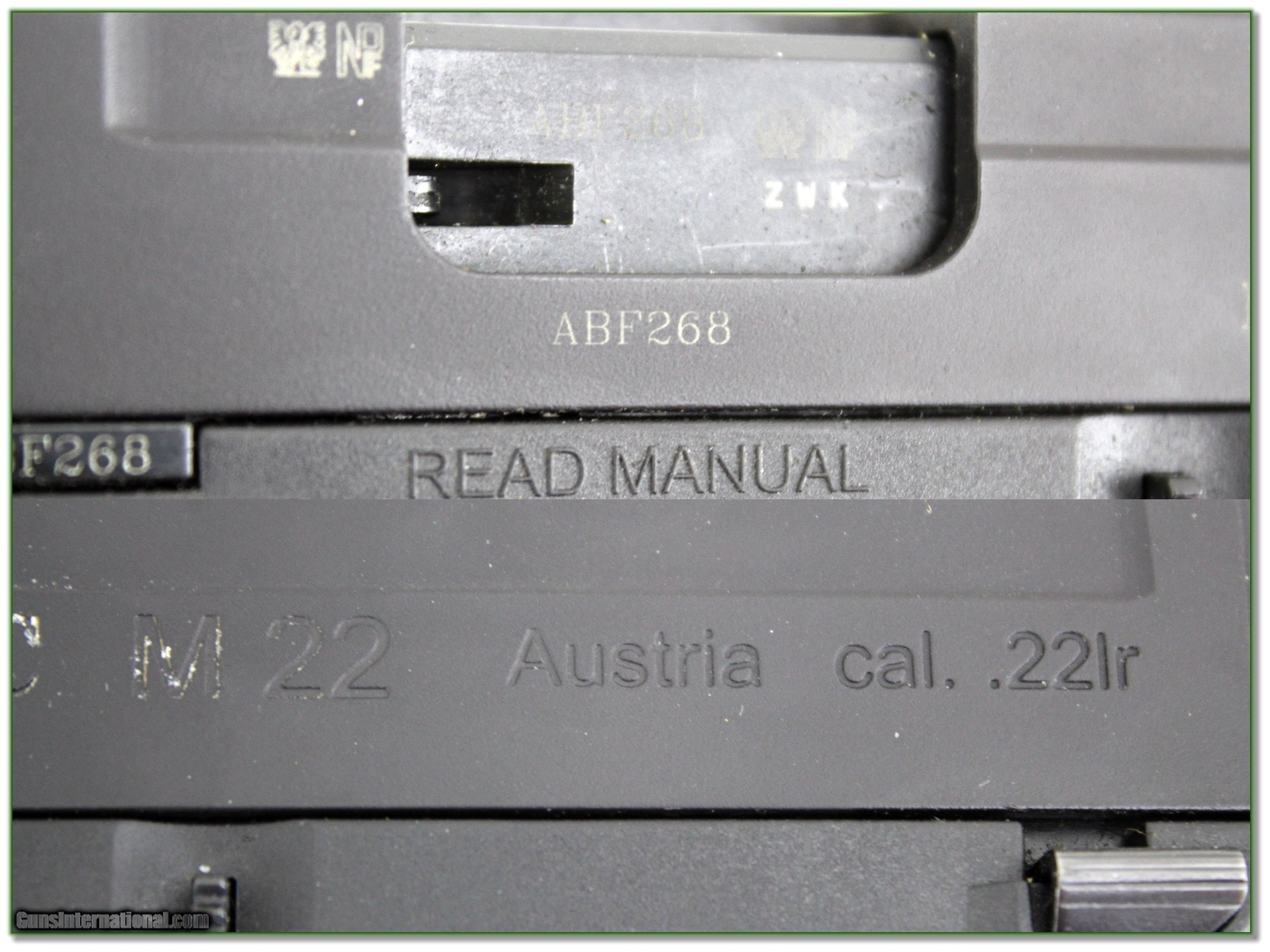 Description: This is an excellent condition Austrian made ISSC M22 22LR. I only have the gun as pictured. I am selling this one on consignment and as such lay-a-way can’t be used. It does of course have the standard 3-day inspection. Shipping and insurance is $39. Please email me with any questions or larger pictures. (Consign your quality firearms with Shooting Investments for only 12%! Let me know if you have any you would like to sell!) 23-0465 Payment: Payment is by Money Order, Cashier’s Check or Personal Check. I can now also accept Credit Cards (MasterCard, Visa, Discover & American Express) with a 3% convenience fee. Shipping: The shipping charge will be listed in each description. It is $49 for most firearms. Some heavy guns or those insured for over $2000 will be higher. Shipments to Alaska and Hawaii are higher because air shipment is required. Most firearms are shipped on Tuesday and Thursday and usually in 5 days of receipt of payment. We package all shipments carefully and insure them. Optics are shipped Priority Mail and most other non-firearm shipments are shipped First Class. Returns: Our return policy is simple. If for any reason you are not pleased with your purchase, you may return your item for a full refund of purchase price. Ammunition cannot be returned. It is important to us that you are happy. Guns cannot be fired or dissembled before returning them and they must be returned in the same condition as received. Notification of a return must occur within 3 days of receipt at your dealer. Shipping, convenience and dealer fees are not refundable and are the responsibility of the buyer. Lay-a-way: If needed, we offer a 60 day lay-a-way option on most firearms. It is 1/3 now, 1/3 in 30 days and 1/3 in 60 days. Lay-a-way firearm sales are final and cannot be returned. If a lay-a-way is not completed the first payment cannot be refunded. Consigning your firearms with Shooting Investments: We will help you get top dollar for your firearms. While most local guns shops charge 20% or more, our fee is only 12% with a minimum of $75. At your local gun shop it might take months to sell. Selling on-line provides instant access to thousands of interested buyers. You won’t find any other on-line dealer willing to sell your firearms for only 12% or listing every gun on 3 separate s. Selling through an House typically costs the seller 15% and the buyer an addition 15% (so 30%) and you have to wait several months to sell and longer to receive funds. If properly priced, we will sell your firearms within a few weeks. Send us an email or give us a call and we’ll explain how easy it is for you to get top dollar. Trading: Trading for us is really just buying your gun to re-sell. If you have a gun you want to trade, please email a picture and we will let you know what we can give for it. You will always get more if we sell it for you on consignment. SOLD |