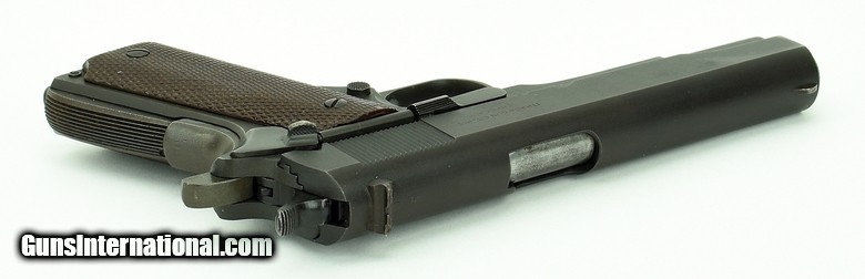 Description: Ithaca M1911A1 .45 ACP caliber pistol. WWII issue. Bore is excellent. Action works perfectly. Gun is about very good overall.
