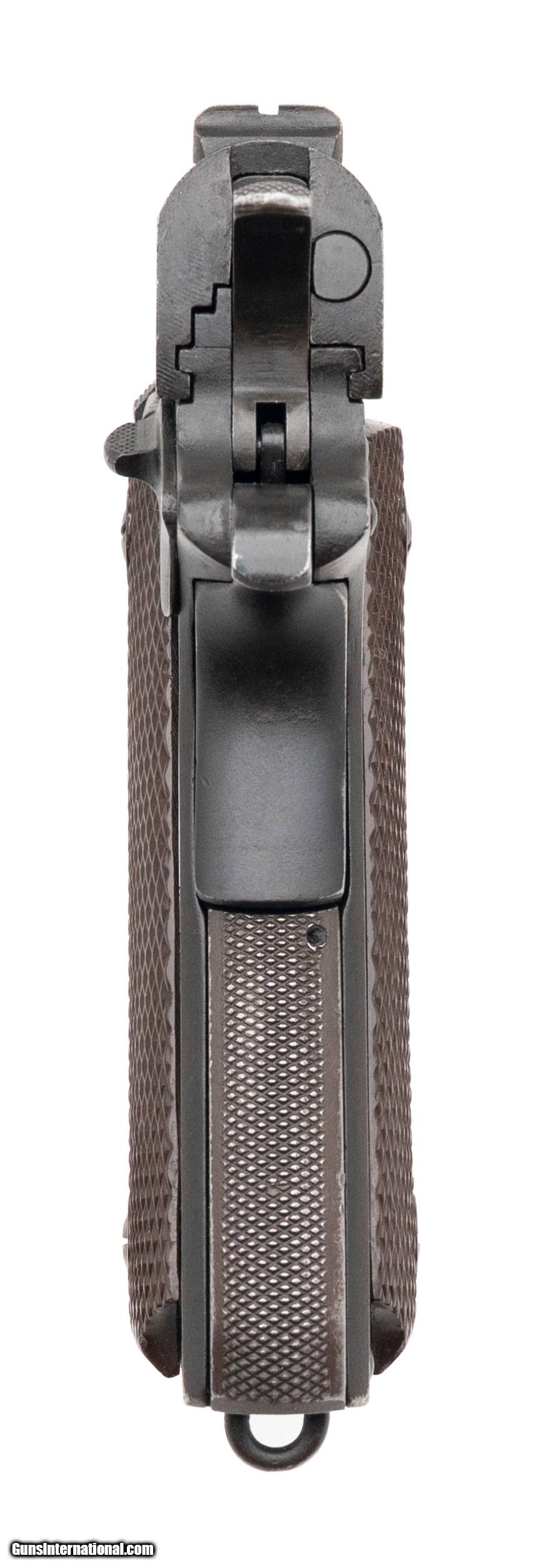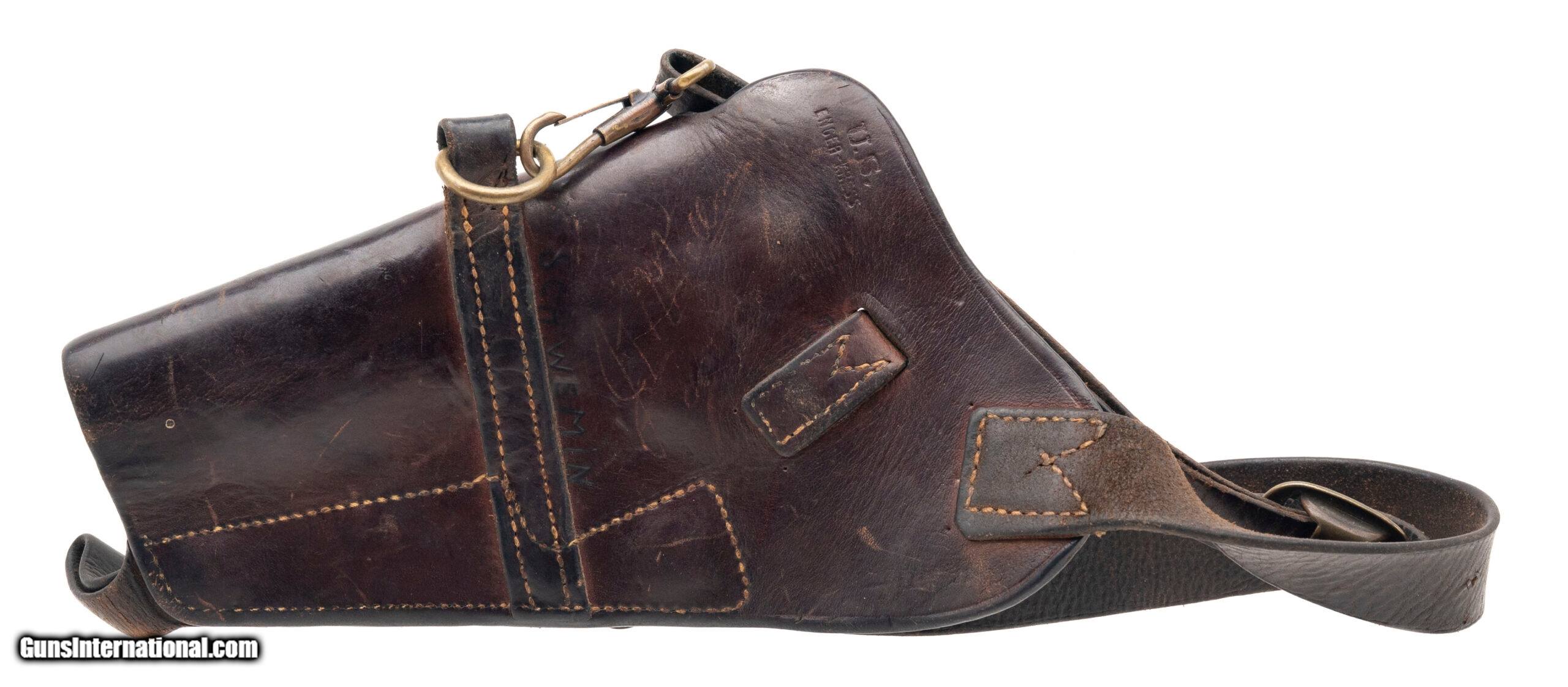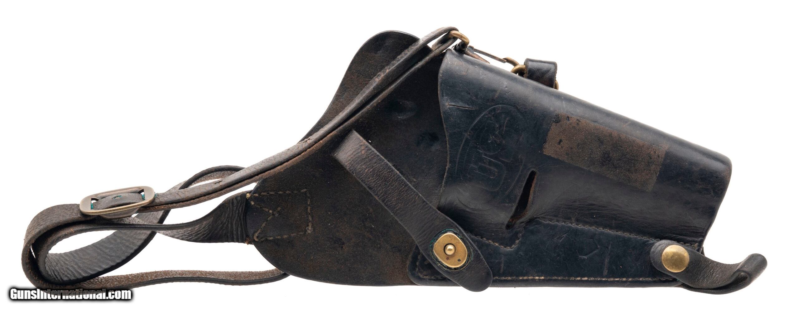 Description: "Serial No. 1803687, manufactured 1944, .45 ACP, 5" round barrel. This Ithaca-produced M1911A1 was manufactured in 1944 during peak WWII wartime production. Pistol has been arsenal refinished, with scattered oxidation present, primarily on exposed edges and the slide. Factory roll markings remain sharp and legible. The checkered brown grips are in good condition, showing light handling wear consistent with use. Action is smooth and functions correctly. This is a solid representative example of a classic WWII U.S. service pistol. Pistol comes with “U.S." marked shoulder holster that also has a name carved in. Curio/Relic: Yes Price: $1,495.00 Contact Seller |
