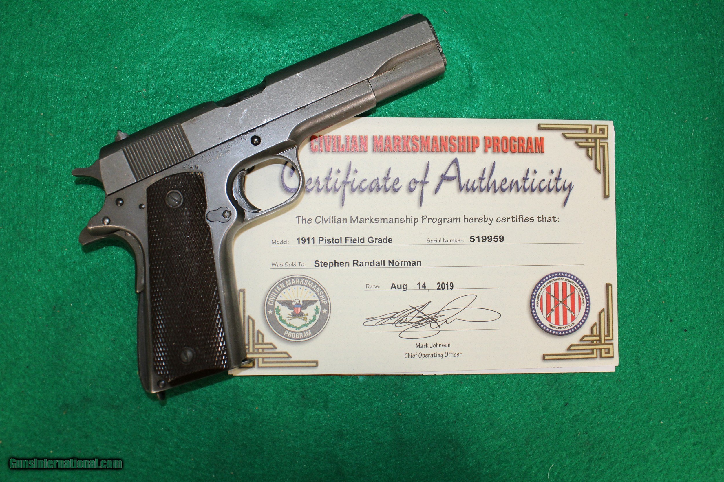 Description: Ithaca 1911 CMP Service Grade .45 ACP pistol. S/N: 519959. Bright bore with good rifling with paperwork and hard case. CONTACT INFORMATION!! To purchase, layaway a firearm, or if you need assistance with any internet sales items please contact the store during business hours at 1-601-825-9087and ask for Jon or Alyssa. Our store hours are: Mon-Sat 9AM-6PM Guns International Sellers Terms and Agreement We accept Visa, MasterCard, Discover, and American Express, money orders, and personal checks. Please Note: That all card transactions (Credit/Debit) will be charged a 3% Credit Card Fee at the time of purchase. Layaway Terms: We offer layaway on most items for a 90-day period. The terms require a minimum down payment of 15% at the time of set up with no required payment plan for the remaining balance. Remaining payments are at the buyer’s discretion, but the full payment amount must be completed by the 90th day. If the buyer chooses to cancel a layaway, the buyer will incur a $50 restocking fee. California Sales We are enrolled in the California CFLC system and will ship qualifying firearms to any eligible FFL in California. Due to the additional steps we must complete on California sales we charge an additional $50 S/H fee. If you wish to have a firearm shipped to California please contact us and we will email you an interactive invoice where you can submit your payment including the additional fee. Alaska and Hawaii Sales There are extra shipping costs. Please request a quote before . Product Photos Please carefully look at each and every photo to ensure the condition of the item(s) in question. We do our best to take accurate photos that not only show off the quality of our items, but to also point out any marks or flaws. SHIPPING: Stock photos are used for many of our listings. Please confirm the manufacturer's part number and UPC are consistent with the item you are looking for. Shipping Long Guns cost: $35.00 UPS Ground Handguns cost $35 for Shipping 2nd Day Priority Mail Ammunition and Parts Costs vary, please inquire for estimated shipping costs based on destination, package weight and size. WE DO NOT EXPORT FIREARMS Orders are normally shipped within 3 business days after receiving payment and FFL. But please allow up to 5 business days for us to process and ship your order. Cancellations – Firearm(s) cancellations will incur a 15% restocking fee, unless exchanged for an item(s) of equal or greater value. 3-day Inspection/ Return Policy The 3-day inspection period Is for defects and to make sure the gun received is the gun ordered. If there is a manufacturing defect with the firearm, please notify us immediately so that we can do our best to remedy the issue in a timely manner. After a gun has been transferred to the customer, all issues must be handled through the manufacturer. The above item description and pictures are property of Van’s Sporting Goods and may not be used or duplicated on othersites. International Contact Information: To purchase a firearm or if you need assistance with any internet sales please contact the store at 1-601-825-9087. Mailing Address: Van’s Sporting Goods 777 HWY 468 Brandon, MS 39042 EMAIL ADDRESS: vansfirearmsyahoo Thank you. Jon Born The above item description and pictures are property of Van’s Sporting Goods and may not be used or duplicated on othersites. SOLD |