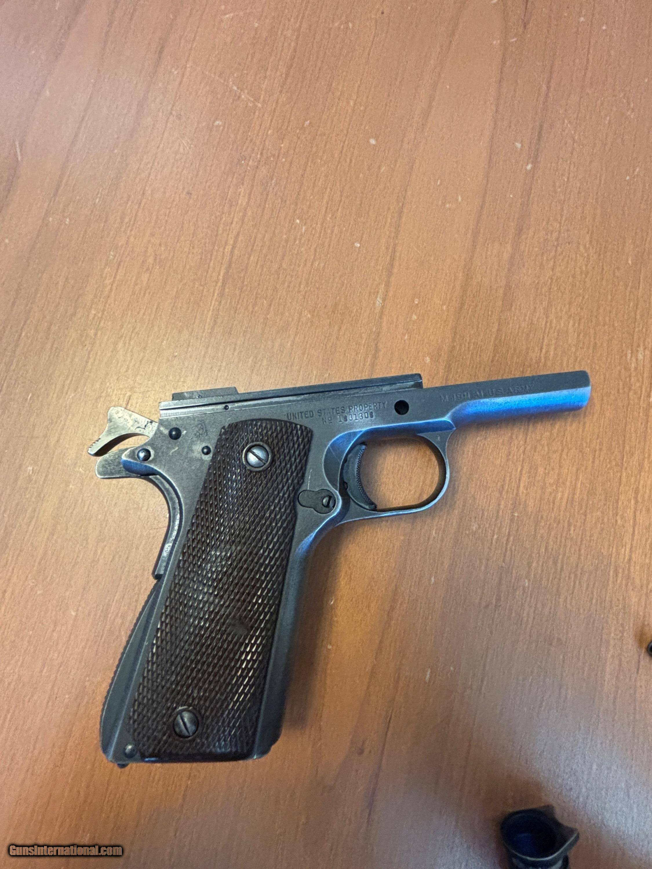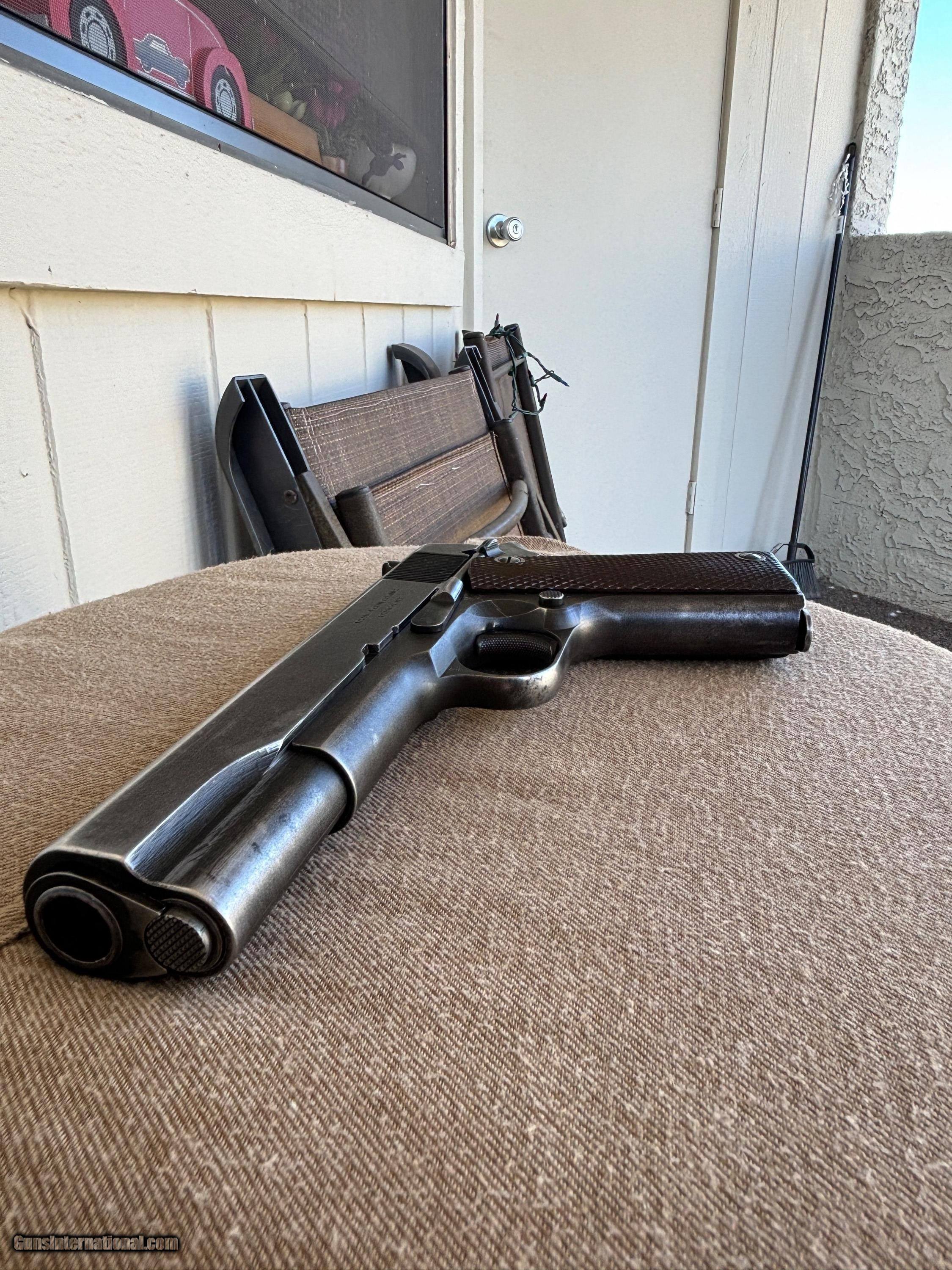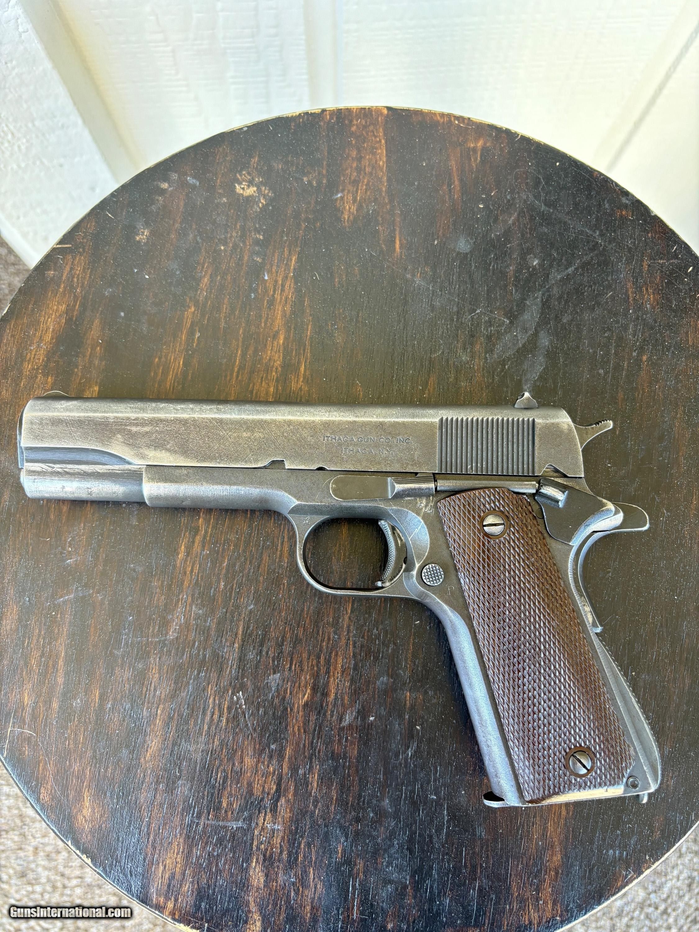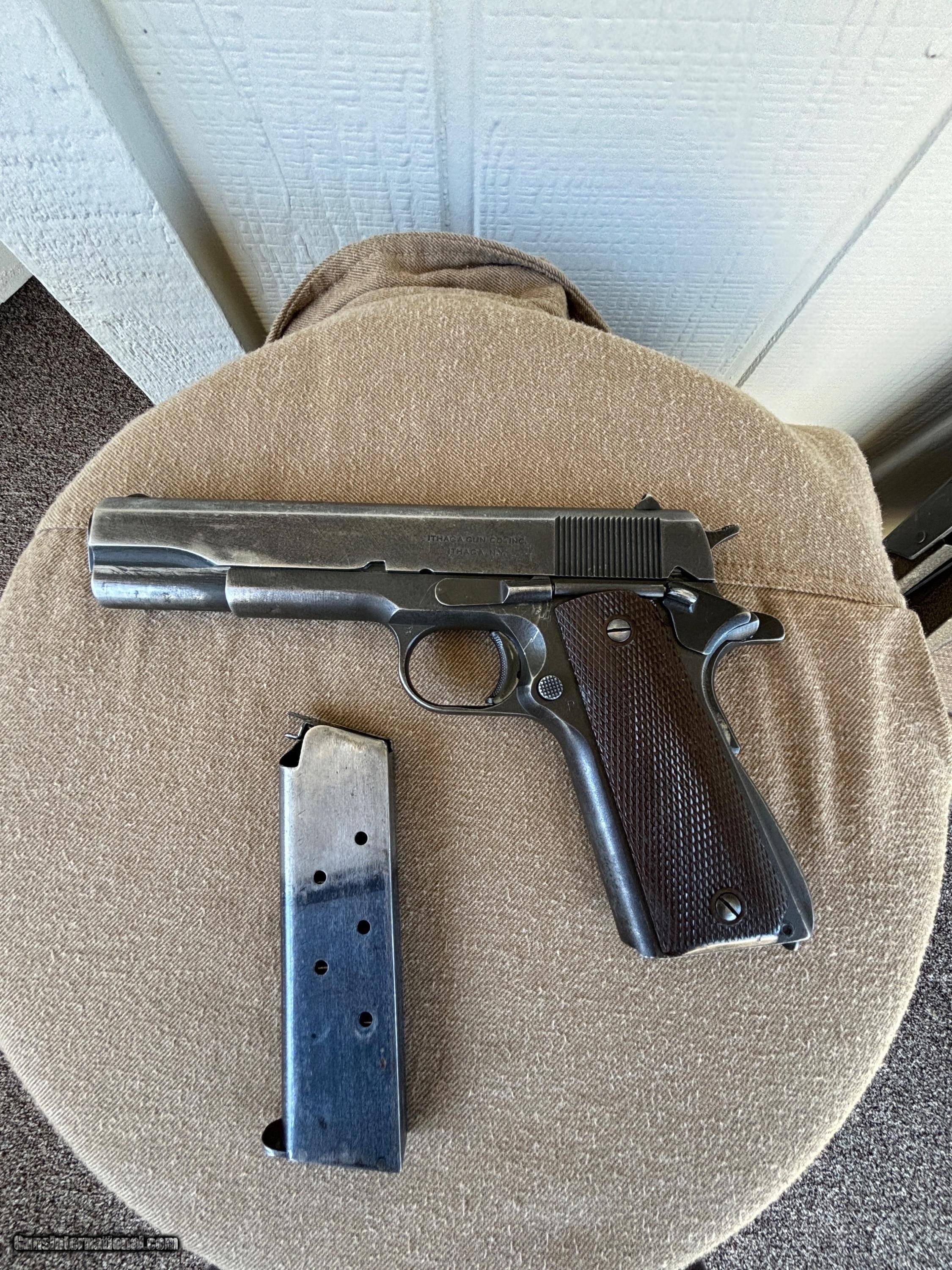 Description: Ithaca 1911a1 .45 ACP 1944 WW2 This pistol is in great shape and shoots perfectly with great accuracy and great rifling! 1944 WW2 peice of history. Comes with the magazine. No. 1831308 SOLD Curio/Relic: Yes Handgun Caliber: .45 ACP (.45 Auto) Manufacturer: Ithaca Model: 1911a1 Serial Number: 1831308 Condition: Great |