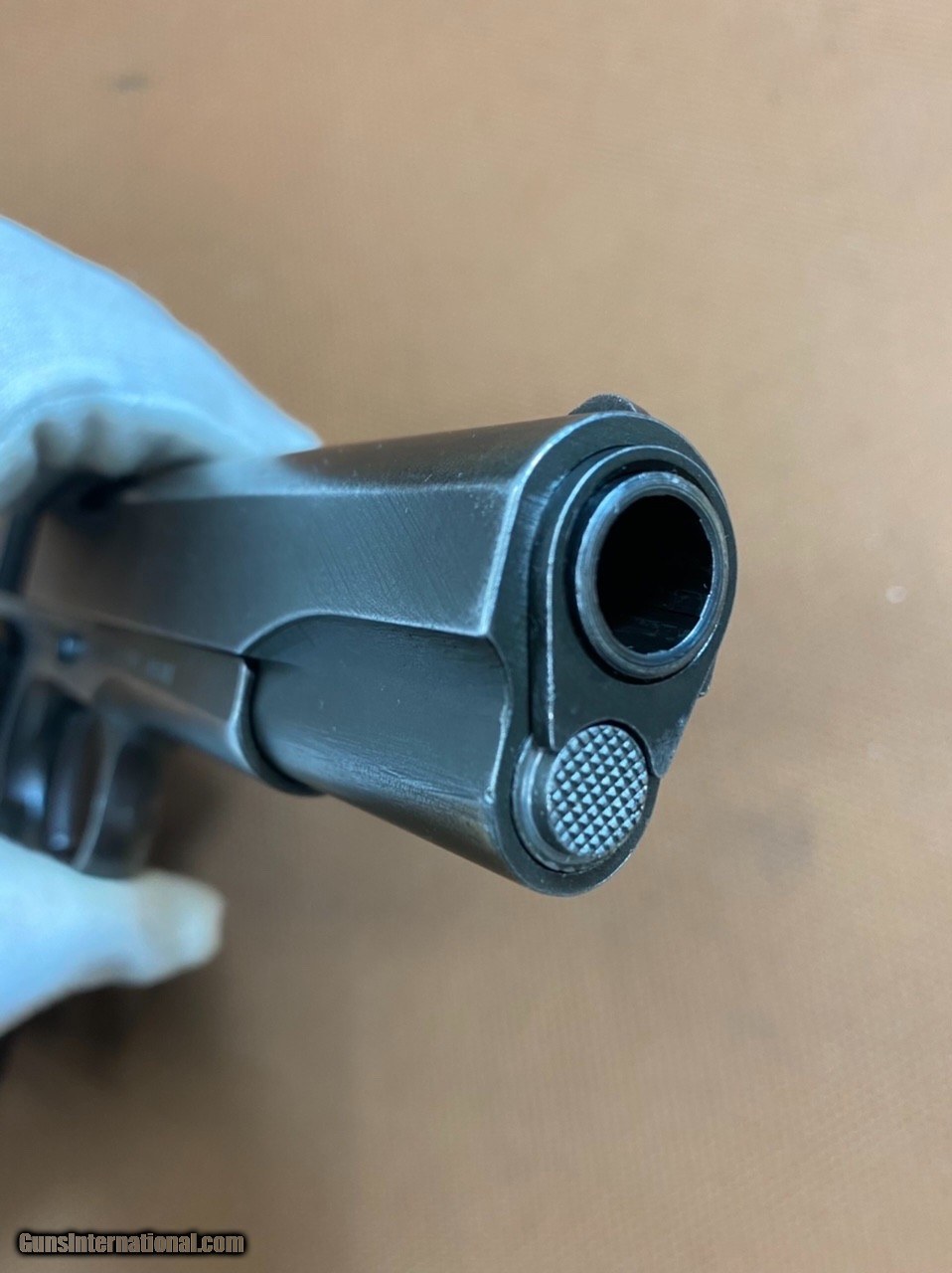 Description: Beautiful All Original WWII Ithaca 1911A1, in excellent condition, we would rate it at 95% condition! All markings are correct and all correct parts (This gun was thoroughly inspected by our gunsmith). In perfect working order! According to Charles Clawson, this gun was part of 5th Ithaca contract (one of 4,500 shipped that day). It was shipped on December 9th, 1944 to the Transportation Officer, Rock Island Arsenal, Rock Island Illinois. It has correct High Standard barrel, Keyes Fibre Co stocks, and M.S. Little Co magazine. Don't miss out on s one. Hard to find in this condition! Please ask any question! Thanks Shipping UPS Ground with Insurance, $75 SOLD Handgun Caliber: .45 ACP (.45 Auto) |