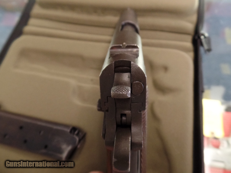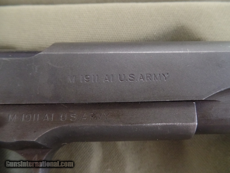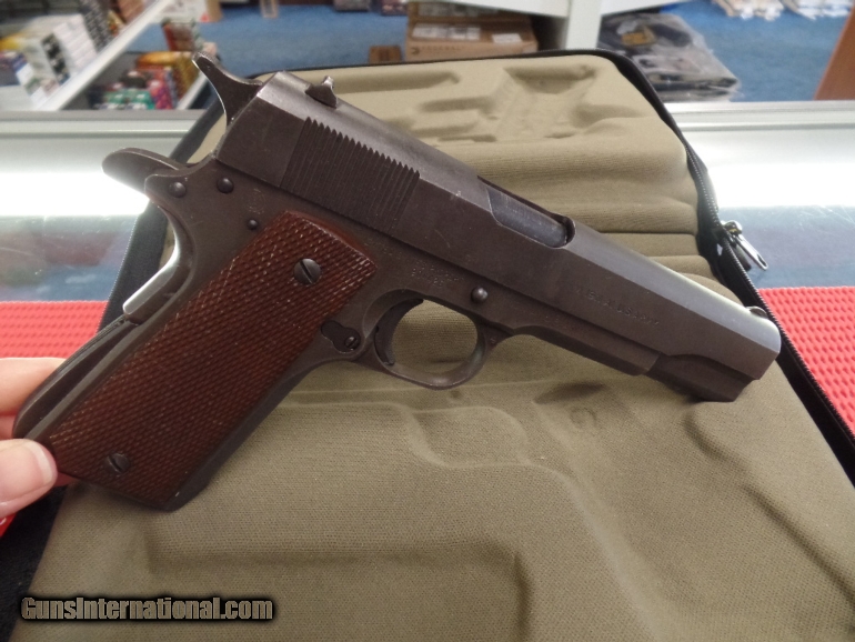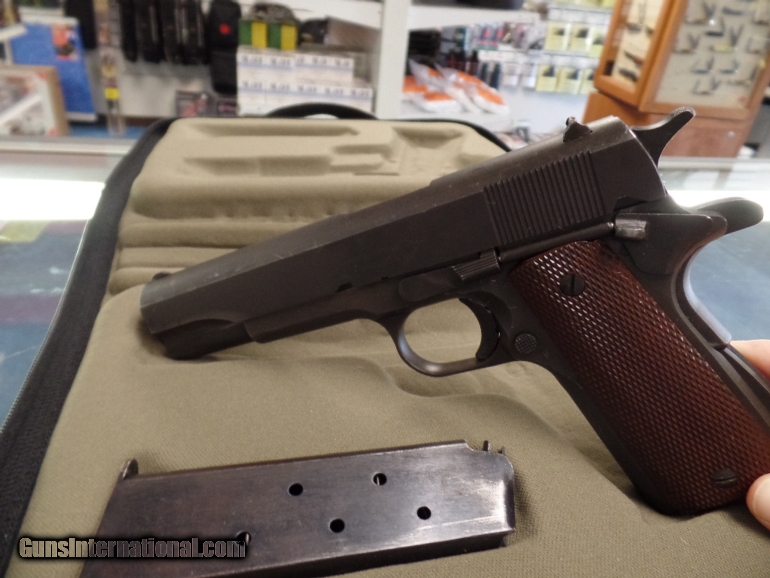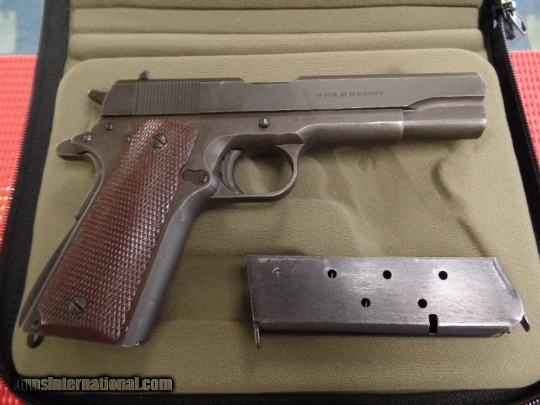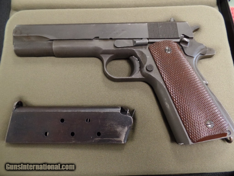 Description: Ithaca 1911A1 .45ACP Pistol, Serial #904426, DOM 1943 *Correct "Early Colt" "Large G" stamped barrel with fine bore *Correct "L" (M. S. Little) magazine *Correct "FJA" inspector stamp (very rare early Ithaca with matching "Flaming Bomb" acceptance stamps on frame and slide, used before Ithaca inspector stamp on trigger guard) "P" proof of fire stamps on frame and slide and "Crossed Cannons" *Correct early "Keys" Type 9 grips without re-enforcement rings *Correct early original "Du-Lite" finish in 90% condition *All parts appear to be correct and original to the very rare early Ithaca These early first contract Ithaca's are very hard to find. This particular example has all the correct pieces and inspector's stamp marks showing this is all original and had never been messed with. This makes this an extremely rare example of a WWII 1911A1 Ithaca. SHIPPING: Shipping and handling charge will be $50.00. All firearms must be shipped to a FFL transfer dealer. We ship to the continental US ONLY. It is your responsibility to make sure you comply with the laws of your county, state, and city on this item. We ship via USPS Priority Mail or UPS with insurance. PAYMENT: We accept Money Orders and Cashier’s Checks. We also accept Discover, MasterCard, and Visa but add 3% credit card processing fee. We must collect sales tax if you live in Illinois (6.75%). We are a licensed FFL dealer. Thank you for your interest! SOLD Curio/Relic: Yes |