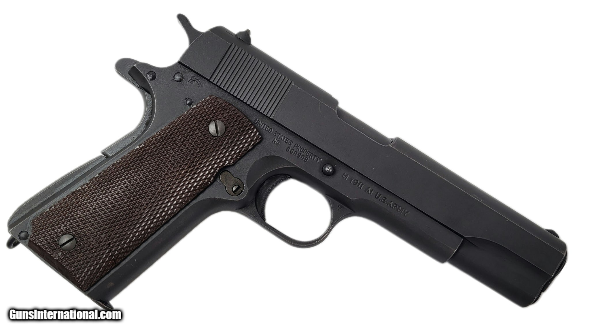 Description: Guns Listing ID: 994363 WWII ITHACA M 1911 A1 .45ACP .45ACP FJA INSTECTION STAMP 5\" HIGH STANDARD BARREL STRONG RIFLING CRISP LEGEND MARKINGS PARKERIZED ORIGINAL FINISH EXCELLENT ORIGINAL GRIPS 1 MAGAZINE 1943‚‚ PRODUCTION EXCELLENT COLLECTOR CONDITION STOCK #- 09125023 SERIAL #- 860908 B SOLD Manufacturer: ITHACA GUN COMPANY Model: M1911 A1 U.S. ARMY Caliber Info: .45 ACP Condition: Used - Non-Certified Barrels: 5 BARREL Finish: PARKERIZED |