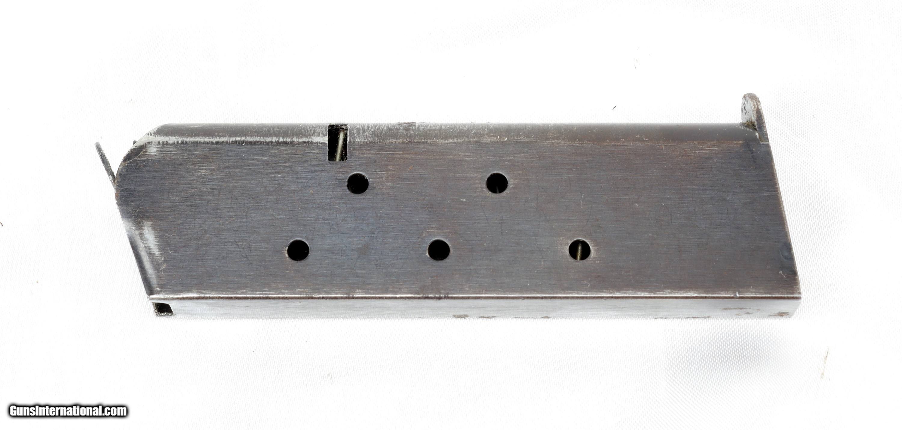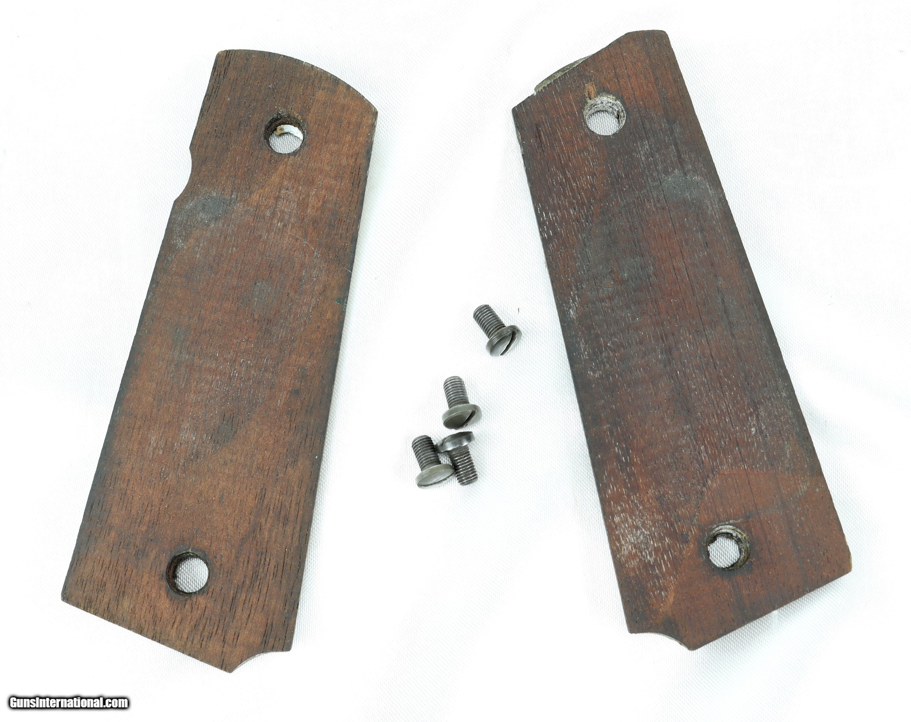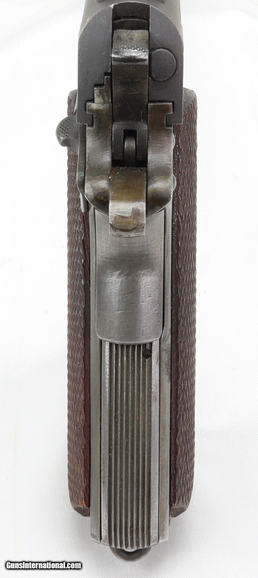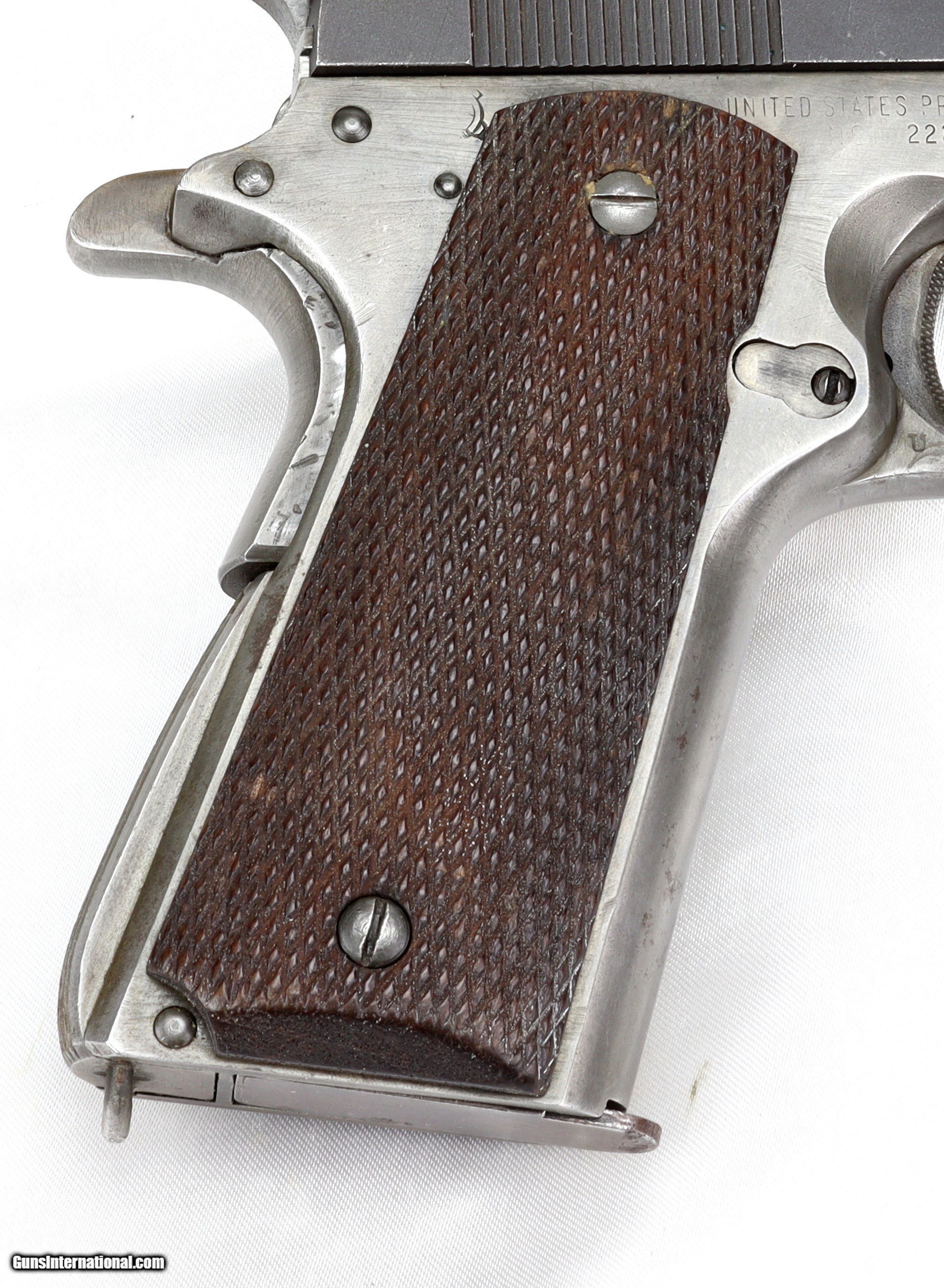 Description: Ithaca 1911A1 U.S. Army Semi-Auto Pistol in .45ACP. SN #2288446. Mfg. in 1945. 5" Barrel with an EXCELLENT Bright Bore with STRONG RIFLING. Parkerized Metal Finish has the usual wear and is in VERY GOOD condition for it's age. The Walnut checkered grips are in GOOD to VERY GOOD condition for their age. Marked with "UNITED STATES PROPERTY" "M1911A1 U.S. ARMY on right side of slide. Inspector Proof "FJA" for Frank J. Atwood, Lt. Col. on left side of frame. Fixed Sights. 1 - 7 round magazine. Weight: 2.42 lbs. Trigger Pull: 3 lbs. 8 oz. More photos available upon request. Ships to Lower 48 W/ Insurance $45.00. SOLD Curio/Relic: Yes Handgun Caliber: .45 ACP (.45 Auto) Manufacturer: Ithaca Model: 1911A1 Serial Number: 2288446 Barrel Length: 5 Condition: VG for Age Metal Condition: VG for Age Wood Condition: VG for Age Bore Condition: Excellent Action: Semi Auto Finish: Parkerized Weight: 2.42 lbs. Manufacture Date: 1945 |