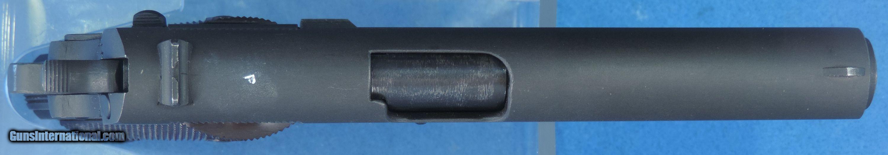 Description: Inv. 6544 Ithaca U.S. Mdl. 1911 A1, Cal. 45 acp, Ser. 2098722. A 99.5% original finish gun Not even any significant holster wear. The only visible loss is due to the very slightest sharp edge silvering and a light rub mark on the right side of the frame. There are no pits, flakes or scratches anywhere. The top of the slide is "P" stamped and the right rear has a very faint Crossed Cannons Ordinance stamp. The right side has a "P" proof and the proper FJA inspectors stamp. The grip strap shows no evidence of handling. The brown plastic grips are without a blemish and are the correct small ring type. The grip screws are no damaged in any way. All parts are proper for the gun. The slide rails, bolt face and feed ramp show just a very minimum of use. The barrel is stamped F (Flannery). The bore like the rest of the gun is minty. It is sunshine bright with razor sharp rifling without the slightest touch of frost. The gun comes with one R (RIsdon) stamped magazine. What a wonderful prize for the collector and should be a winner on the range. A guaranteed a "no regrets purchase.......$2895. To purchase this firearm or if you want to request more information contact us at: Email ckgunsymail Phone 201-512-0002 Cell 201-575-6838 FAX 201-215-4759 We accept most major credit cards. Prices shown are Discounted 3% for Cash or Check. The buyer must be familiar with all the laws governing the purchase and the ownership of firearms in their own city and state. The Yankee Armorer, Inc is not responsible for any failure to comply with or observe these laws. The Yankee Armorer, Inc will only ship after full payment and receipt of all required documents. Shipping: Add $35.00 for handguns, $45.00 for long guns. New Jersey buyers are subject to a 7% sales tax. The Yankee Armorer, Inc offers a 3 day inspection period with full refund upon return of intact firearm and in the original condition. The Yankee Armorer, Inc offers a no interest lay away program - 25% down; 25% in 30 days; 25% in 60 days; and full payment in 90 days. Any violation of this policy is subject to restocking and forfeiture of all payments. Any variation from this policy must be agreed to in advance. Unshipped Cancelled sales are subject to a 20% restocking fee. Be advised that all firearms sold by The Yankee Armorer, Inc. or the Gun Exchange, LLC (SELLER) are sold as collector’s items. They have not been fired or tested for safety and must be examined by a license gunsmith prior to use. By purchasing any item from the (SELLER), you are agreeing to hold the (SELLER) free from any damages or lawsuits of any nature. Any item left for transfer or storage will be charged to $25.00 per month, per item from the day of its receipt. Any variation from this policy must be agreed to in advance. Store hours 10:00 am to 5:00 pm Tuesday -Saturday. It's always best to call for appointment. Store 201-512-0002, cell 201-575-6838. SOLD Curio/Relic: Yes Manufacturer: Ithaca Model: 1911 A1 Serial Number: 2098722 Caliber Info: .45 acp |