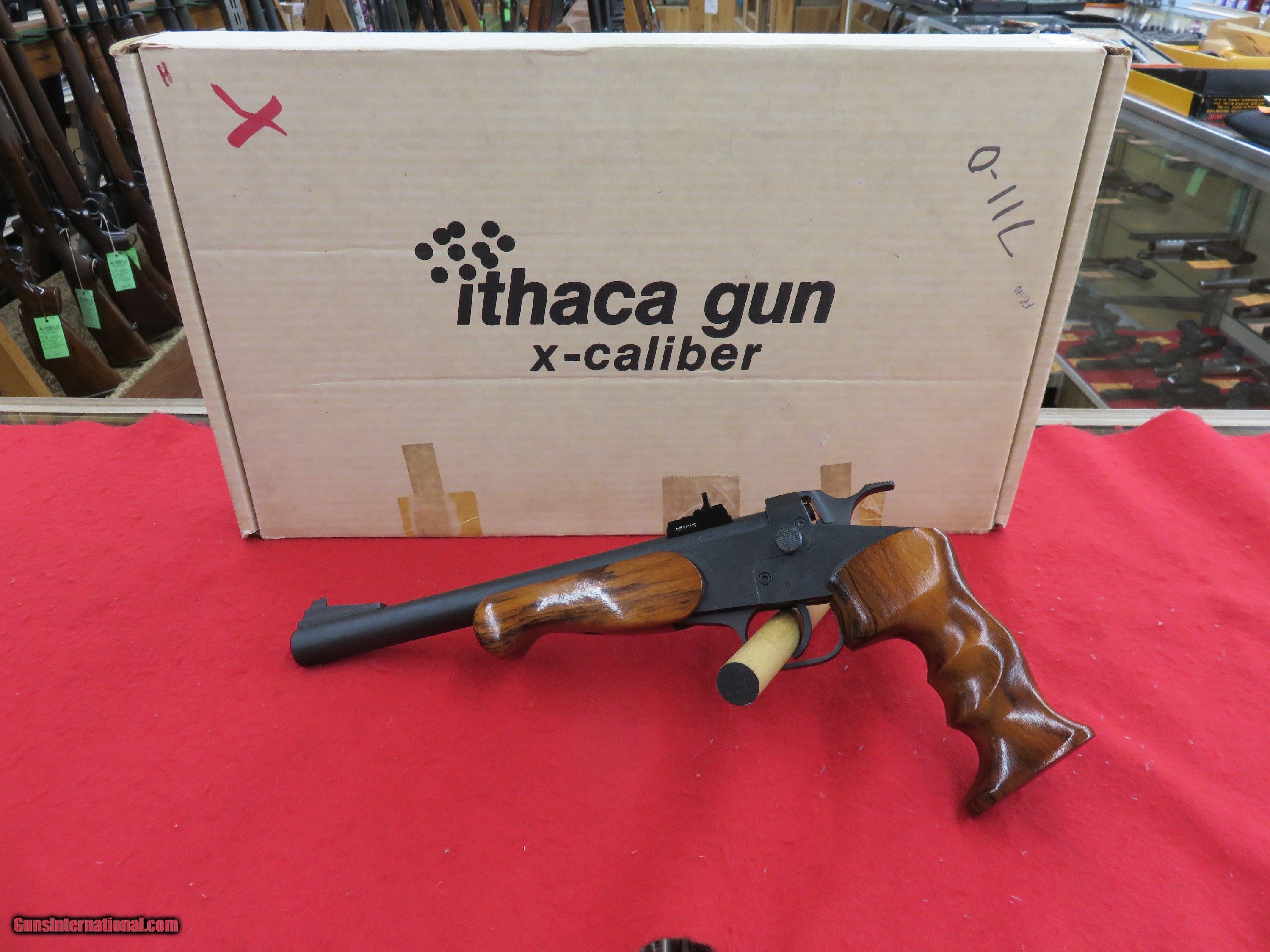 Description: Ithaca, X Caliber, 22LR, Very rare piece. These never actually got sold on market. They were advertised in catalog year 1989, but never made full production. Less than 300 were made, that makes this a real collector piece. Like new in box, $1295.00 + $100.00 shipping SOLD |