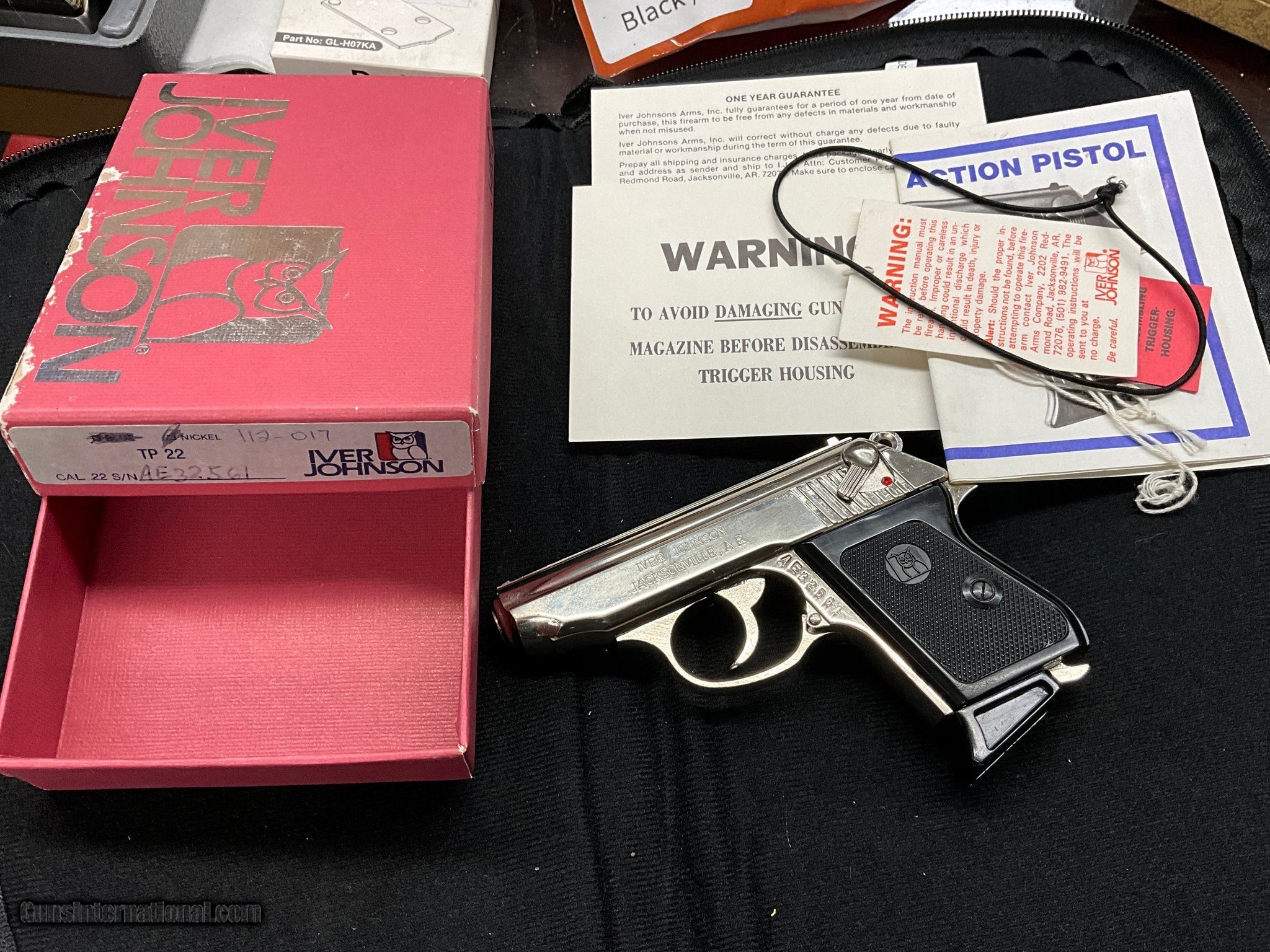 Description: Guns Listing ID: 1318480 it appears to be like new in box condition but believed to have been fired, have your vary own Saturday night handgun! SOLD Manufacturer: IVER JOHNSON Model: tp22 Caliber Info: .22 LR Condition: Used - Non-Certified Barrels: 2.8 BARREL Finish: NICKEL |