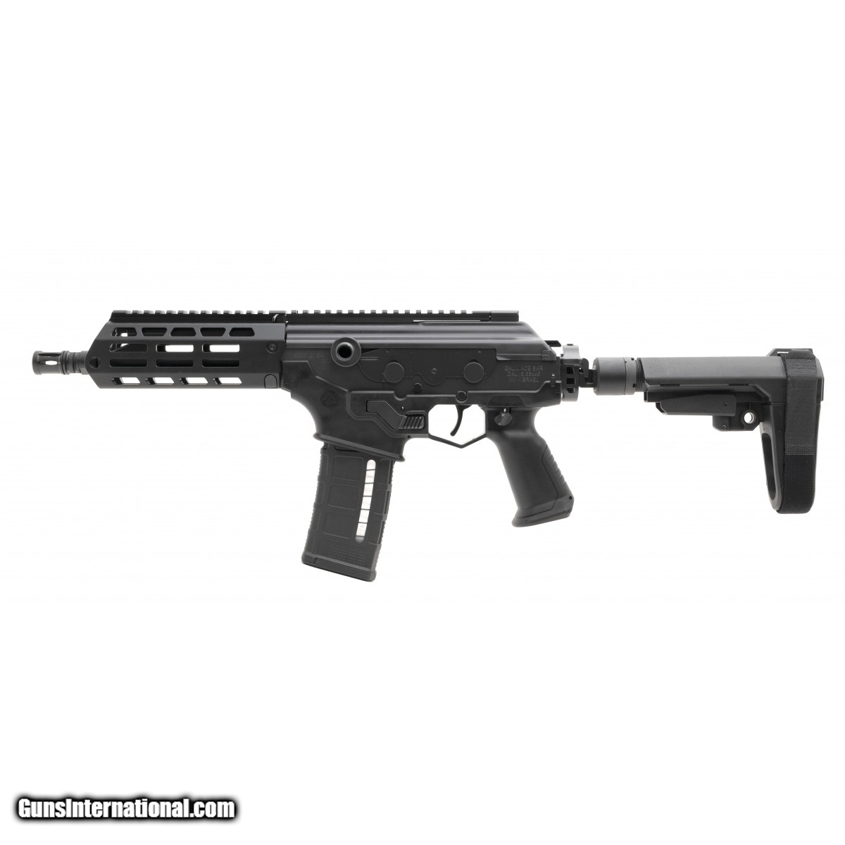 Gen 2 Israeli-made piston operated tactical pistols with M-Lok handguard with SB tactical folding brace. New. UPC:818004022344