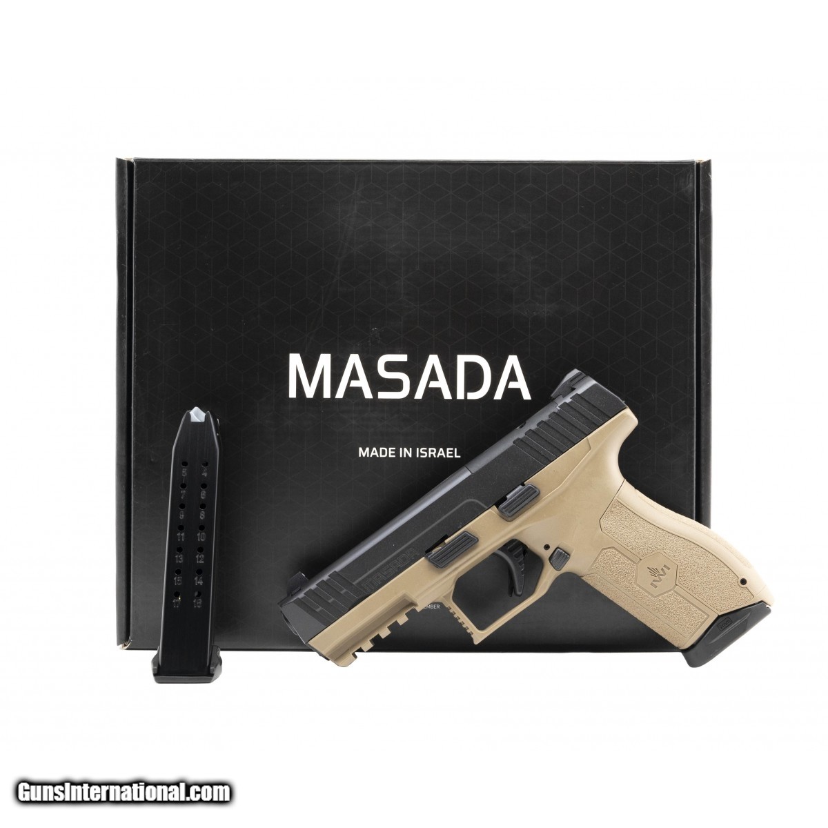 IWI, inc, Masada optics ready, semi-automatic, striker fired, full size, 9mm, 4.1"" barrel, polymer frame, flat dark earth, 17rd, 2 mags and 3 dot sights. NEW UPC:818004021026
