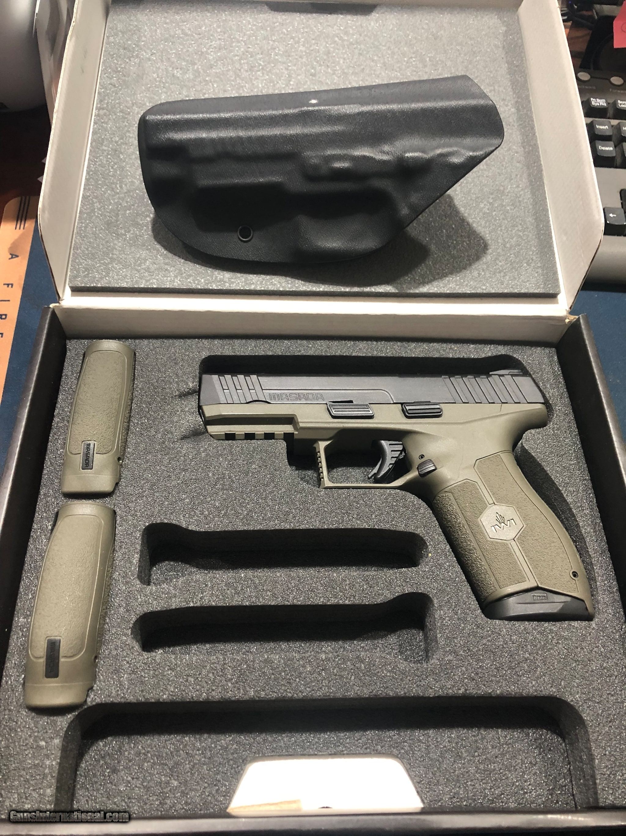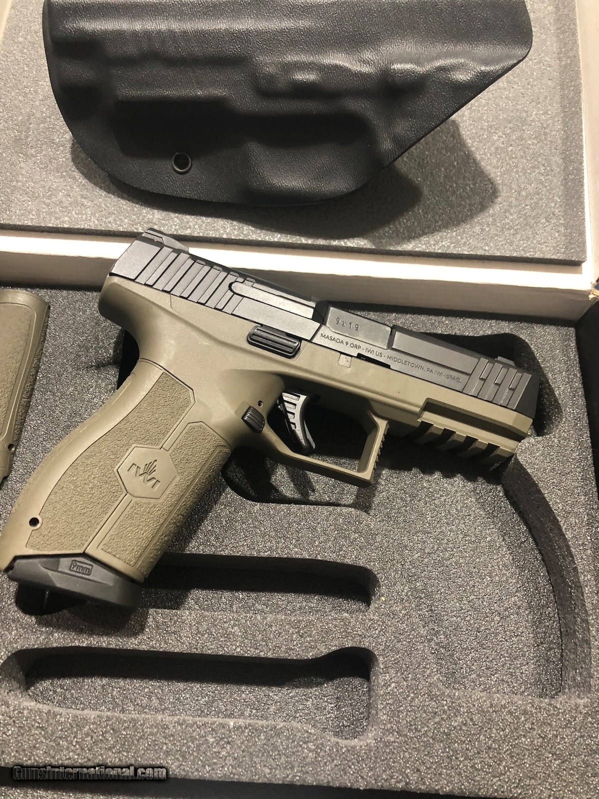 Description: Guns Listing ID: 672142 IWI Masada in OD Green, optics ready. Comes with backstraps and IWB kydex holster. Ambidextrous slide release and magazine release. This pistol is optics ready. No blemishes with the naked eye. SOLD Manufacturer: ISRAEL ARMS INTERNATIONAL Model: Masada Caliber Info: 9MM LUGER (9X19 PARA) Condition: Used - Non-Certified Barrels: 4.1 BARREL Finish: OD GREEN |