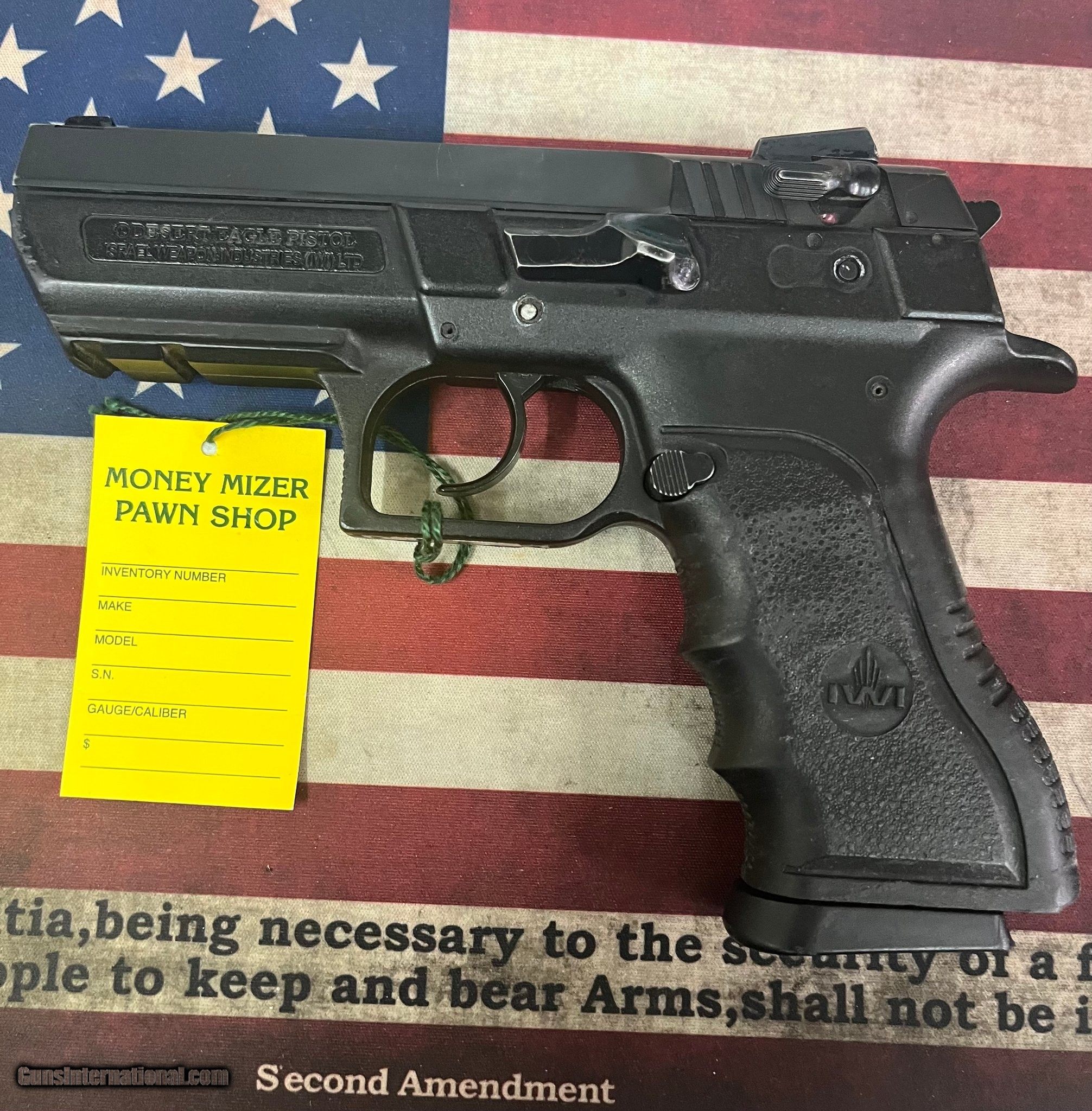 Description: Guns Listing ID: 551773 IWI DESERT EAGLE OR BABY EAGLE IN 40 S&W COMES WITH TWO 12 OR 15 ROUND MAGAZINES. GREAT BUY!***PRICE DROP*** SOLD Manufacturer: IWI Model: BABY EAGLE Caliber Info: .40 S&W Condition: Used - Non-Certified Barrels: 4.43 BARREL Action: SEMI AUTOMATIC |