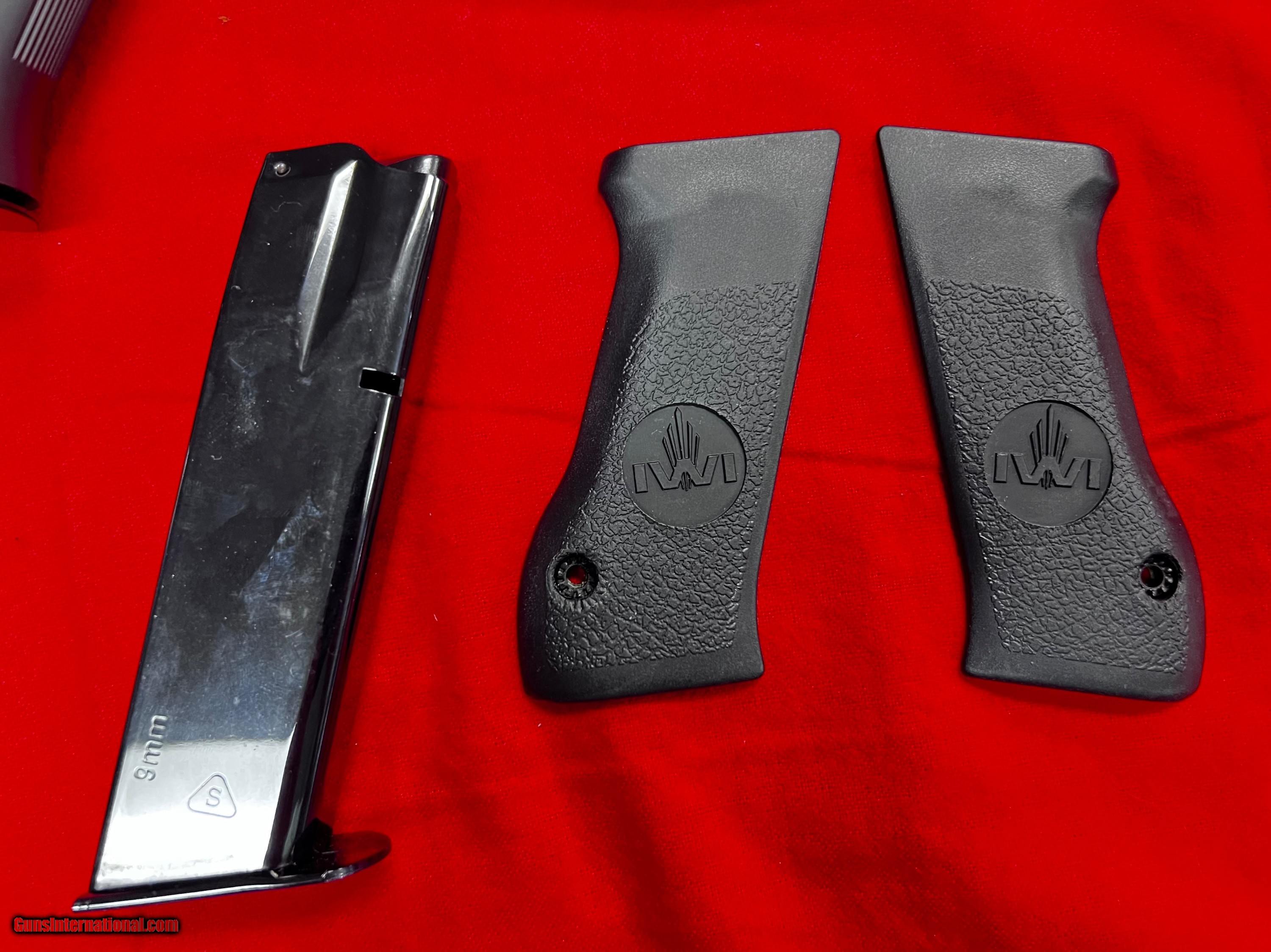 Description: Excellent in factory box 2 mags, factory and aftermarket wood grips steel frame NOT a decocker. SOLD |