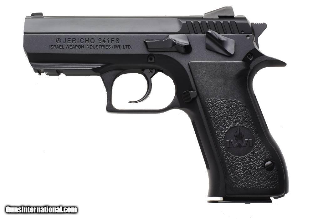 Description: Guns Listing ID: 795128 The IWI Jericho 941 is a family of semi-automatic pistol chambered in either 9mm or 45 ACP. An integrated picatinny rail allows for the attachment of a range of accessories and the Jericho 941 includes adjustable dovetail sights. The barrel and frame are both made of high quality steel and these pistols weigh between 1.6 and 2.3 pounds total. Details Action SADA - Caliber 9mm - Capacity 10 - Finish Black - Sights Adjustable - Twist 110 - Barrel Length 3.8 - Overall Length 7.6 - Weight 2.25 lb - First introduced in the US in 1990 the Jericho 941 has enjoyed wide acceptance by American shooters over the last 25 years. Based on the highly regarded CZ-75 short recoil system Jericho pistols combine proven design and function with IWIs exceptionally high standards for reliable performance accuracy and quality construction. - The Jericho features a frame mounted safety enabling condition one cocked and locked carry and single action function or hammer down double action function. Additional features include an integral Picatinny rail for mounting accessories adjustable dovetailed sights a firing pin block and a loaded chamber indicator. Barrels are cold hammer forged of the finest Mil-Spec CrMoV steel. - Each Jericho 941 comes with two standard capacity magazines or two 10 round magazines for consumers who reside in states with magazine capacity restrictions. No models will be available for CA or MA. SOLD Manufacturer: IWI Model: JERICHO FS9 Caliber Info: 9MM LUGER (9X19 PARA) Condition: new Barrels: 4 BARREL |