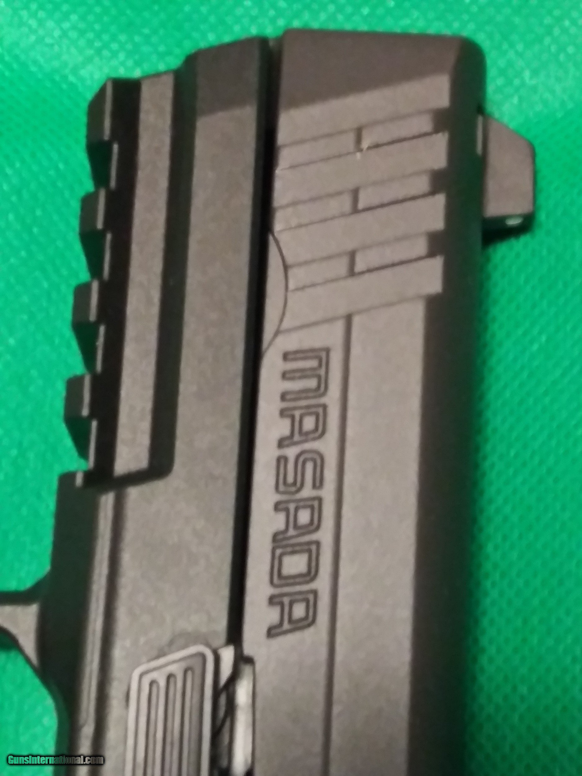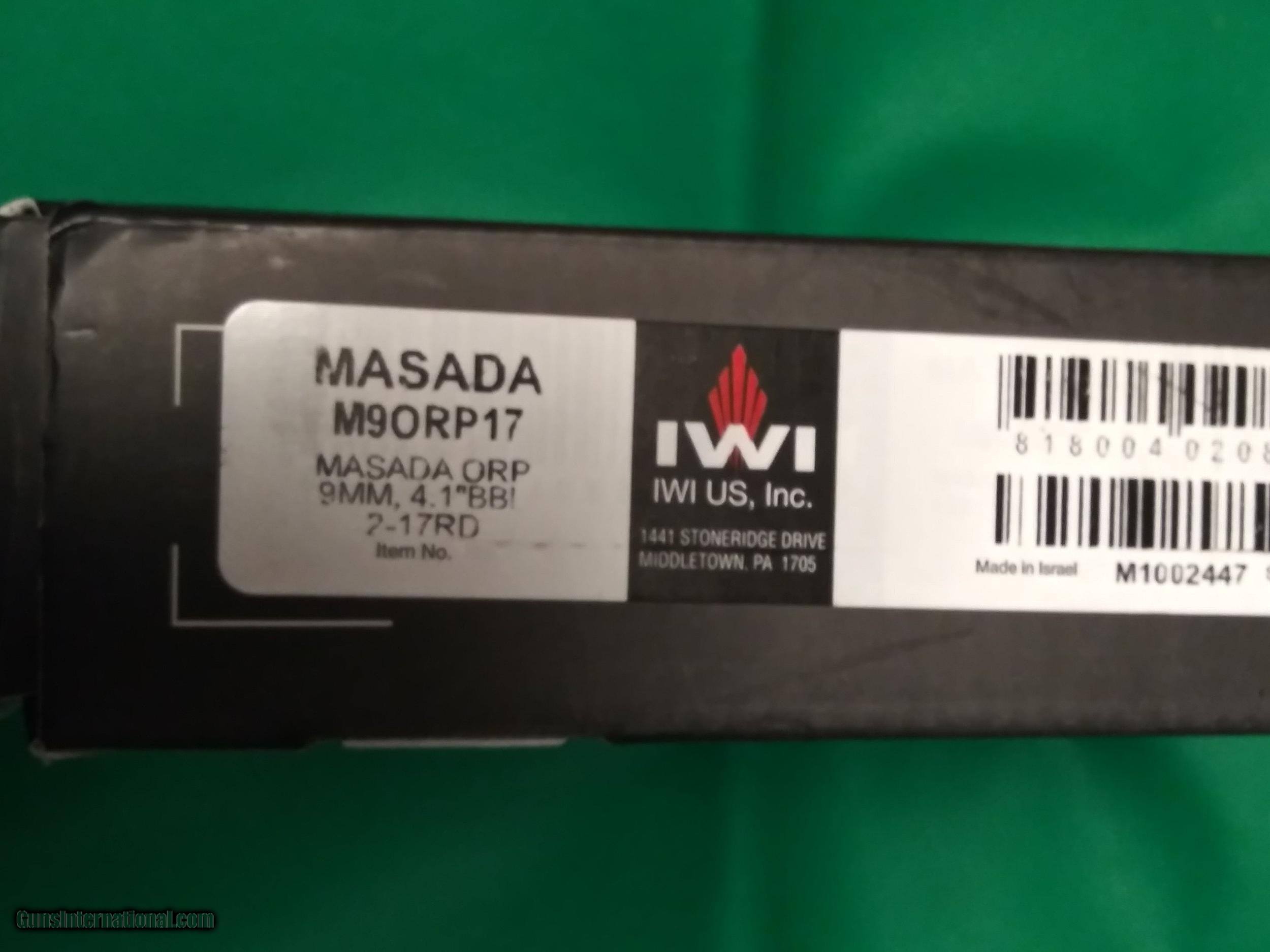 Description: IWI M9ORP17 Masada Pistol. 9mm. 4in barrel, 17rd magazine x2. 99% Like New condition. NO MANUAL.