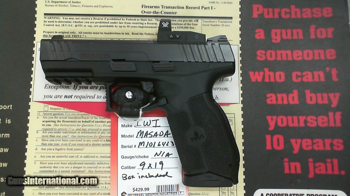 Description: Guns Listing ID: 603480 IWI Masada 9x19 very good condition Masada 9 Orp ref#E43001992 SOLD Manufacturer: IWI Model: MASADA 9 ORP Caliber Info: 9X19MM Condition: Used - Non-Certified Barrels: 4 BARREL Finish: MATTE BLACK |