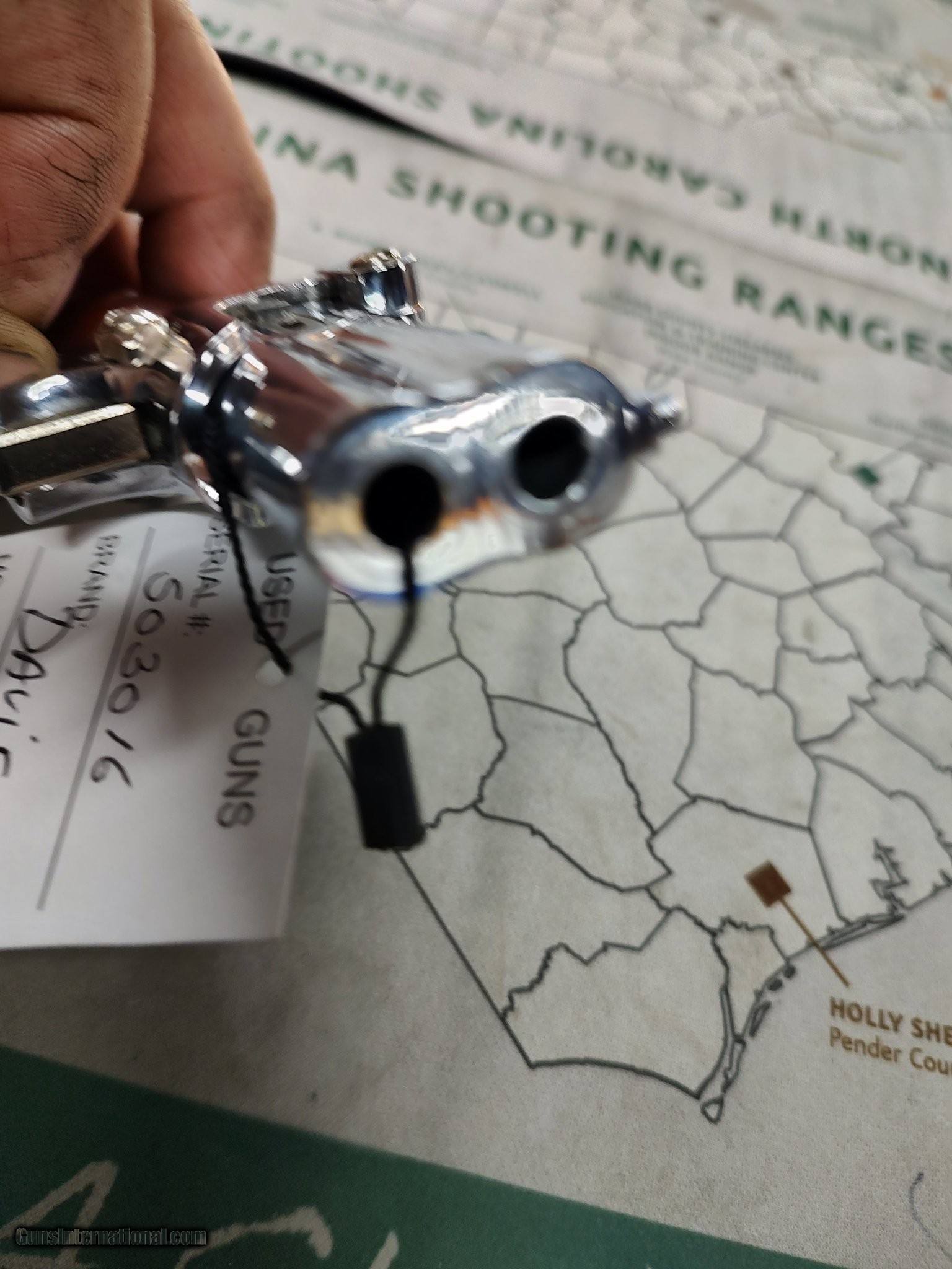 Description: Guns Listing ID: 580976 Davis model d - 22 Derringer 22 long rifle 22 short 22 long doesn‚t matter. Great little pocket pistol excellent condition SOLD Manufacturer: DAVIS INDUSTRIES Model: D-22 Caliber Info: .22 LR Condition: Used - Non-Certified Barrels: 2.25" BARREL Action: OVER/UNDER Finish: chrome |