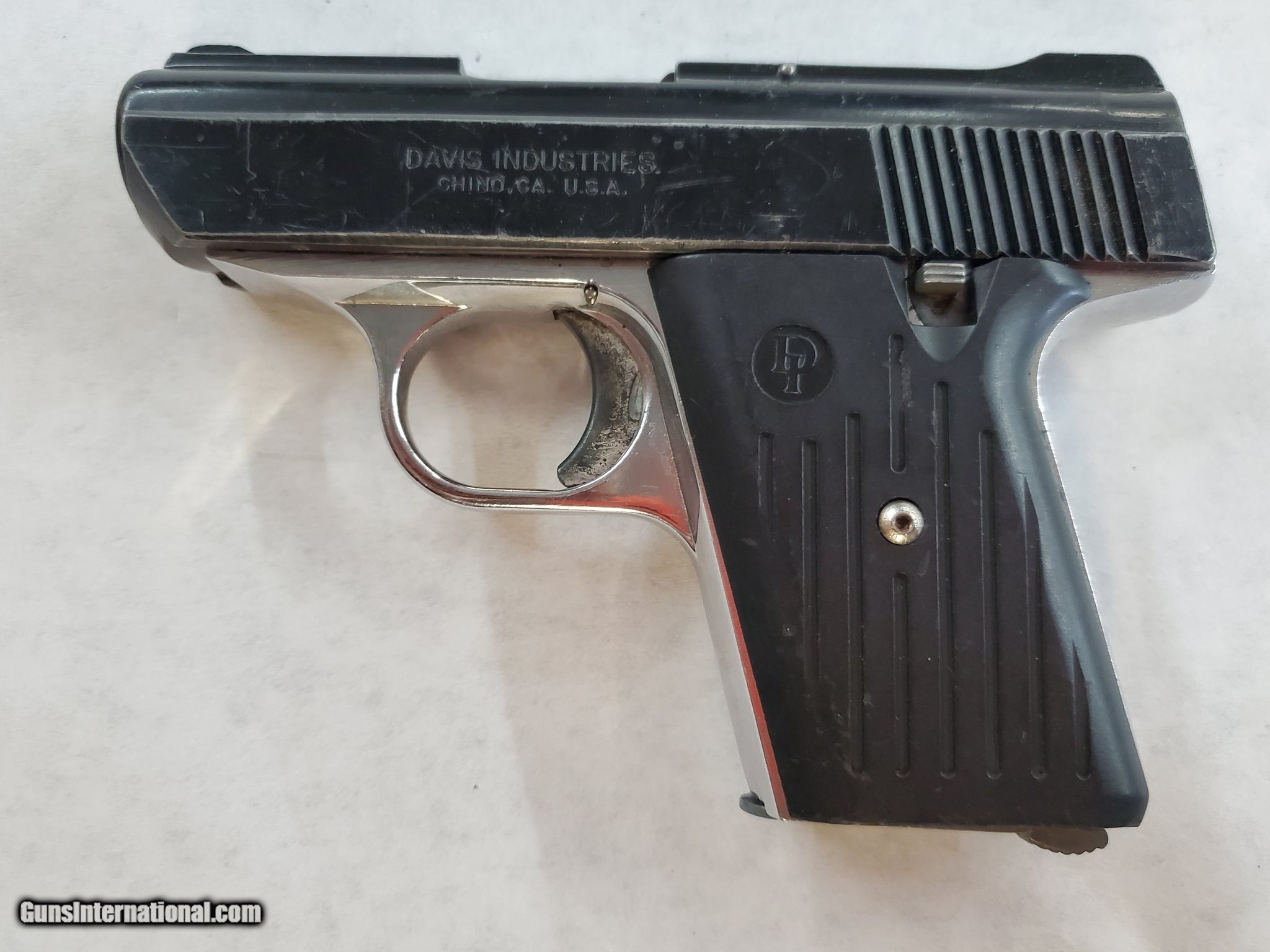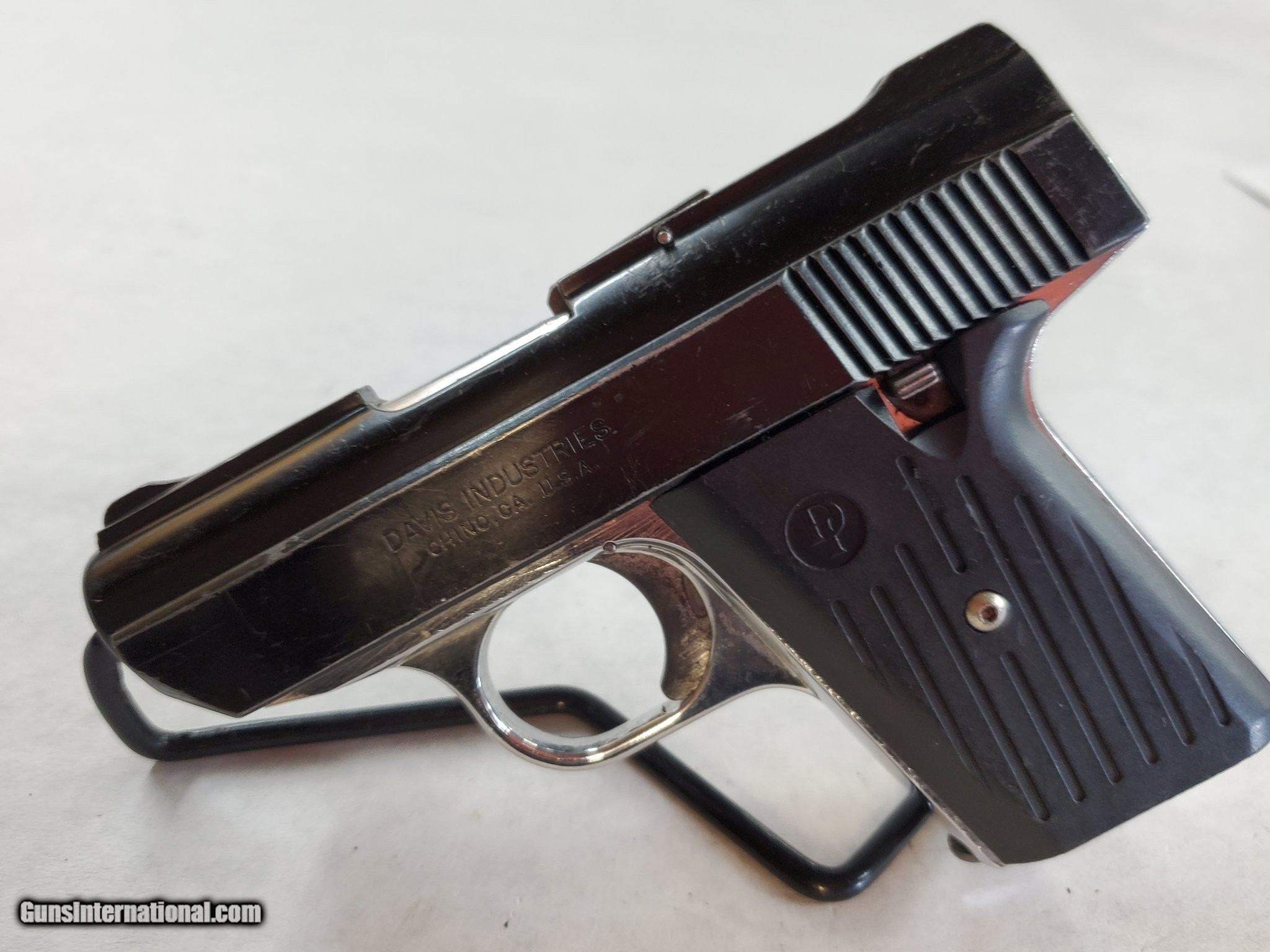 Description: Guns Listing ID: 539180 ?? Overview & Specs Type: Semi-automatic pocket pistol Caliber: .380 ACP Capacity: 5 + 1 rounds via a thin stamped-steel magazine Barrel Length: ~2.8" (70 mm); overall ~5.5" (140 mm) Weight: Around 22 oz (0.67 kg) release.bluebookofgunvalues Construction: Zinc-alloy (“pot metal") frame and slide, often finished in chrome or black Teflon; grips are wood or synthetic SOLD Manufacturer: DAVIS INDUSTRIES Model: p-380 Caliber Info: .380 ACP Condition: Used - Non-Certified Barrels: 2.8 BARREL Action: SEMI AUTOMATIC Finish: black and stainless |