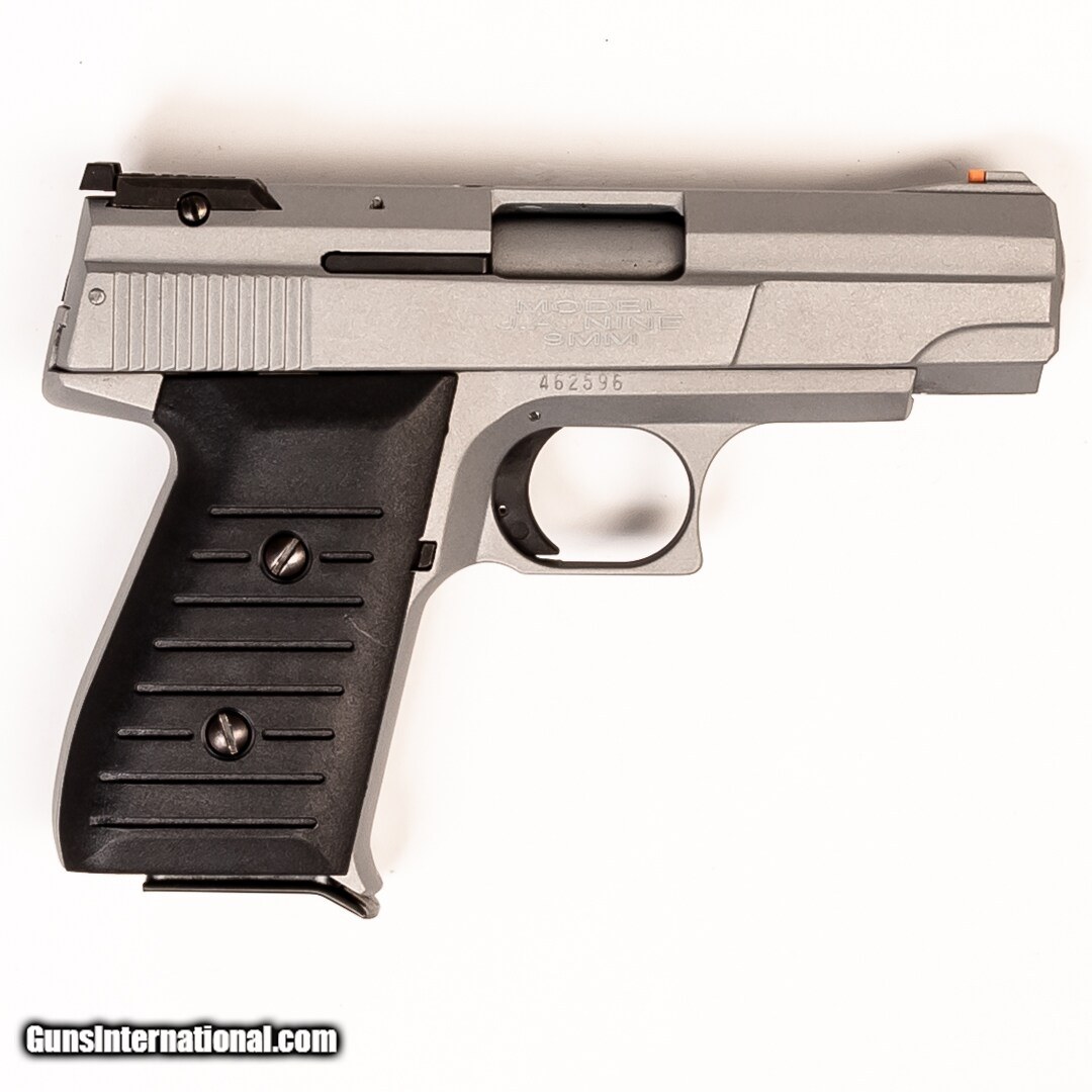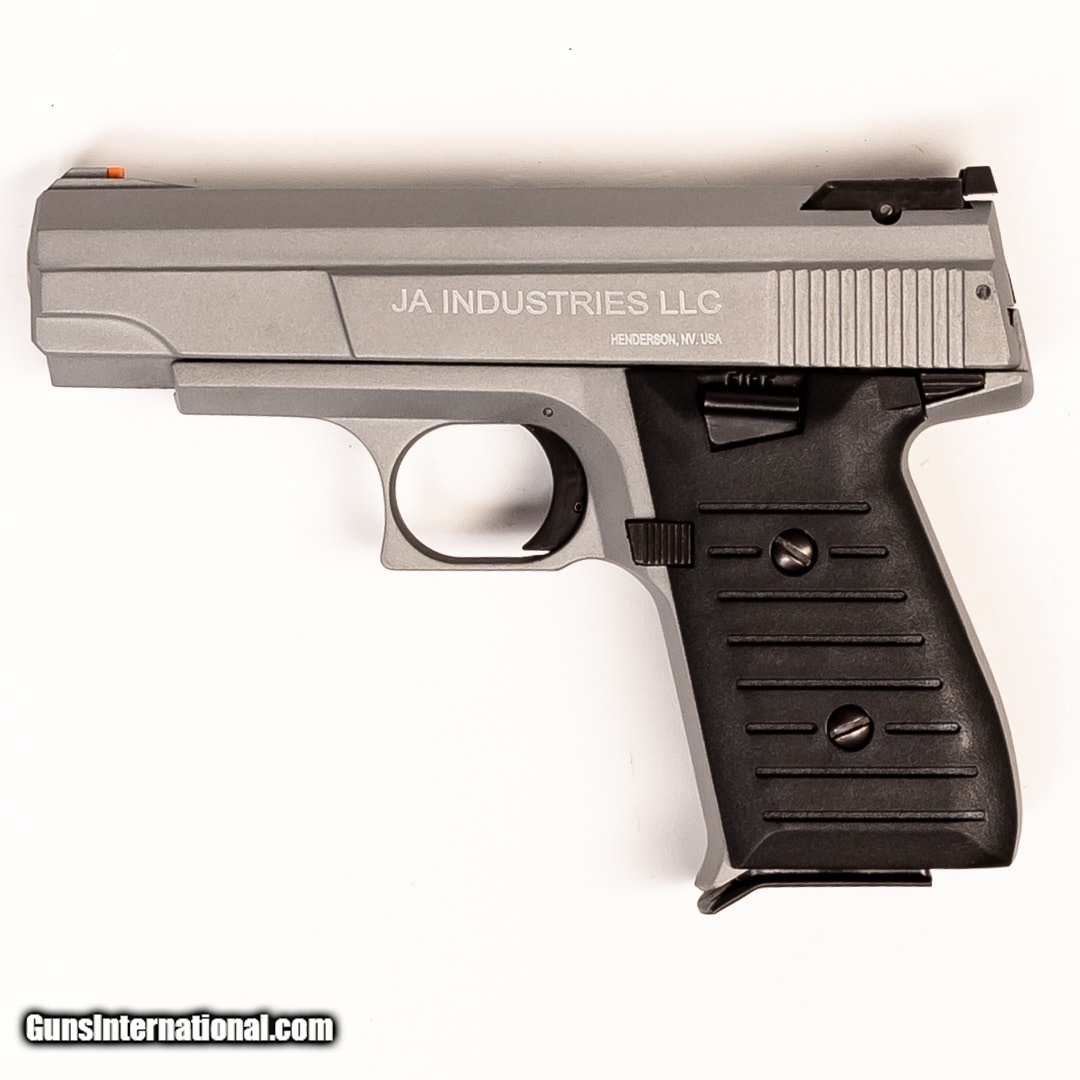 Description: Guns Listing ID: 545050 The Jimenez Arms Industries (JA Industries) J.A. Nine is an exceptionally affordable semi-automatic pistol. It is chambered in 9mm Luger and is in excellent condition! Purchase includes the original box, manual, and two 12-round magazines. This J.A. Nine is not compliant for states with \"melting point\" laws. SOLD Manufacturer: JA INDUSTRIES Model: J.A.-NINE Caliber Info: 9MM LUGER Condition: Used - Certified Barrels: 3.75 BARREL Finish: SILVER |