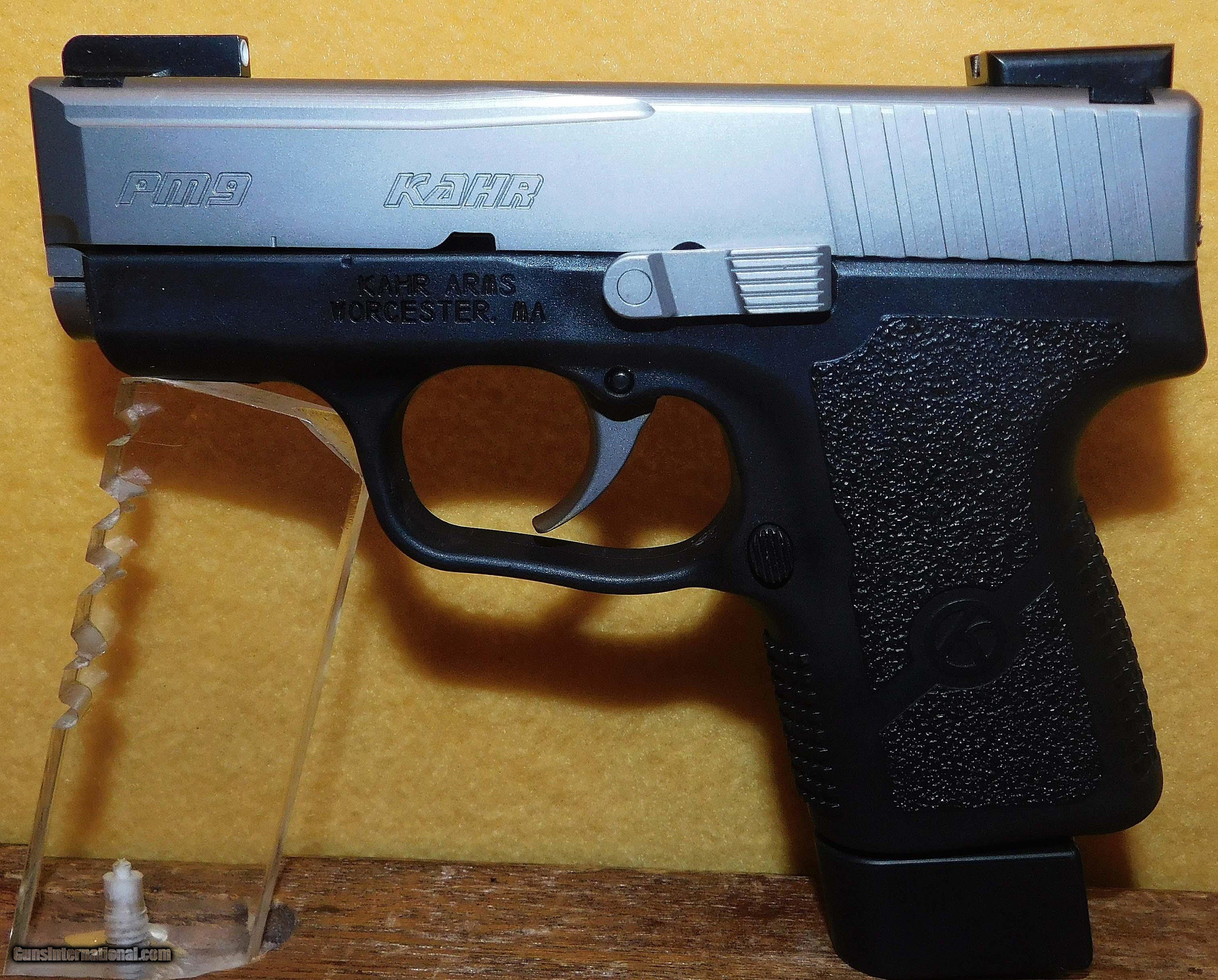 Description: KAHAR PM9 IN 9MM CAL., WITH BARREL. COLOR TWO TONE. CONDITION 97%. SERIAL NUMBER IF4519. KAHAR ARMS MODEL PM9 IN 9MM CALIBER, MIRROR BORE, GRIPS EXCELLENT, COMES WITH ONE FACTORY MAGAZINE, HARD CASE WITH PAPERS, 97% OVERALL CONDITION, OUR STOCK # D3203 SOLD |
