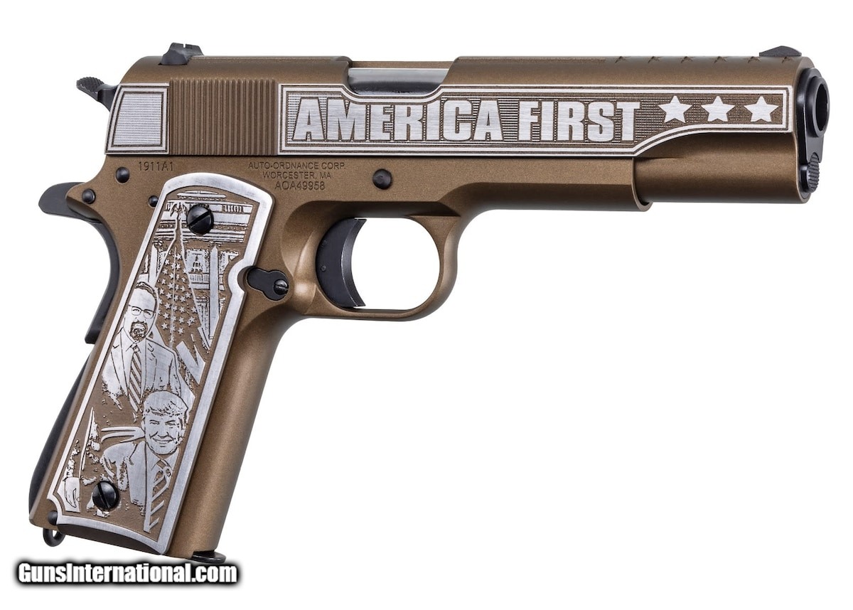 Description: Guns Listing ID: 392658 Kahr Firearms Group is excited to announce a new collaboration with Dr. Sebastian Gorka, former advisor to President Trump, radio host, and expert on national security. The “America First” custom Auto-Ordnance 1911 will be one of 300 limited edition pistols, engraved with detailed artwork devoted to the Second Amendment as a Civil Right. Kahr Firearms Group shares Dr. Gorka’s strong conviction that the Right to Keep and Bear Arms is a fundamental human right, and that America should always come first in the hearts of true patriots. Each of these custom Auto-Ordnance 1911s is artfully engraved by the team at Outlaw Ordnance, with “The Second Amendment is a Civil Right” on the left side, and “America First” on the right. The grips depict Dr. Gorka, and President Trump. Also depicted are the American Flag, Dr. Gorka’s autograph, and radio broadcast imagery. The finish is Cerakote Burnt Bronze, with Armor Black controls. The “America First 1911” starts as an Auto-Ordnance GI series pistol, made entirely in the United States. Each pistol’s 5” grade barrel is chambered in .45 ACP. SOLD Manufacturer: KAHR ARMS Model: 1911 America First Custom Gorka Caliber Info: .45 ACP Condition: new Barrels: 5" barrel Finish: BURNT BRONZE CERAKOTE |