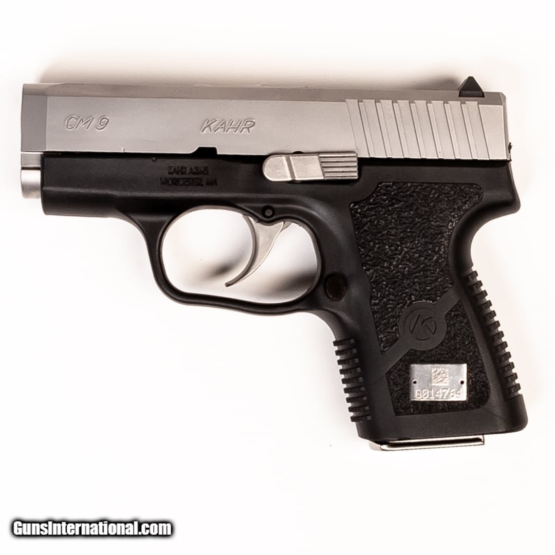 Description: Guns Listing ID: 521776 The Kahr Arms CM9 is a compact semi-automatic handgun chambered in 9mm. Affordable yet dependable, this polymer-framed pistol is an excellent option for concealed carry and close-range self-defense. This CM9 includes the owner‚‚s manual and one 6-round magazine SOLD Manufacturer: KAHR ARMS Model: CM 9 Caliber Info: 9MM LUGER Condition: Used - Certified Barrels: 3 BARREL Finish: TWO TONE BLACK AND S |