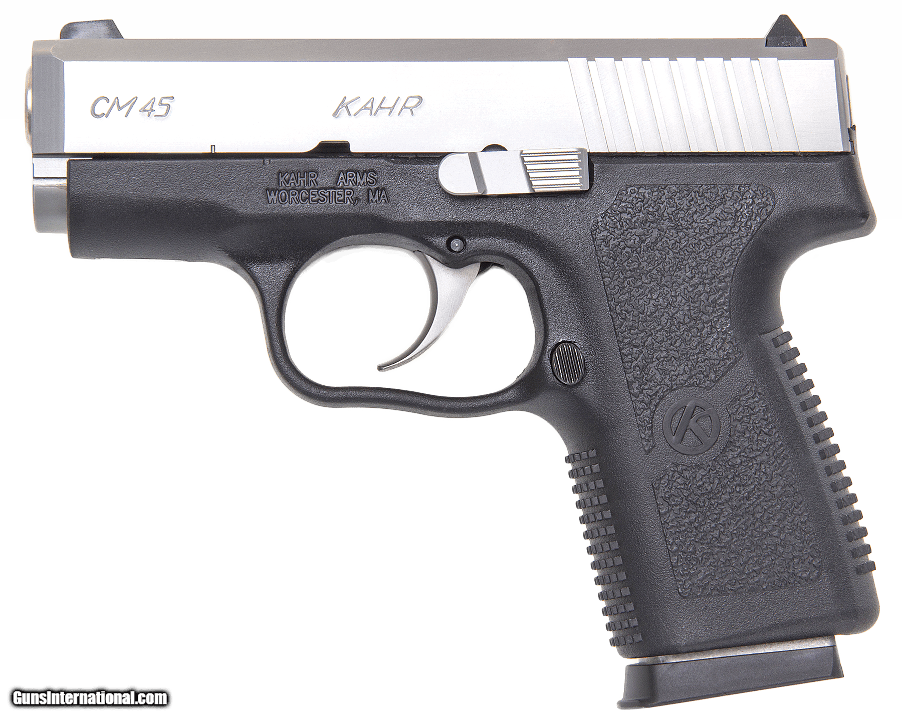 Description: Guns Listing ID: 19159 The Kahr Arms CM is a family of polymer framed semi-automatic pistols with a stainless steel side. Barrels are available at 3 3.1 or 3.25 in length and it is adorned with a drift adjustable combat rear sight and a pinned in polymer front sight. As an excellent concealed carry gun textured polymer grips ensure a steady grasp for every shot fired from the CM. Details Caliber .45ACP - Capacity 5rds - Barrel 3.24 - Sights Drift Adjustable White Bar-Dot Combat Rear Sight Pinned in Polymer Front Sight - Action DAO - Frame Black Polymer - Slide Matte Stainless Steel - Length 5.79 - Width 1.01 - Height 4.49 - Weight 17.3 oz (unloaded) SOLD Manufacturer: KAHR ARMS Model: CM45 Caliber Info: .45 ACP Condition: new Barrels: 3.1 BARREL Action: DOUBLE ACTION Weight: 1 |