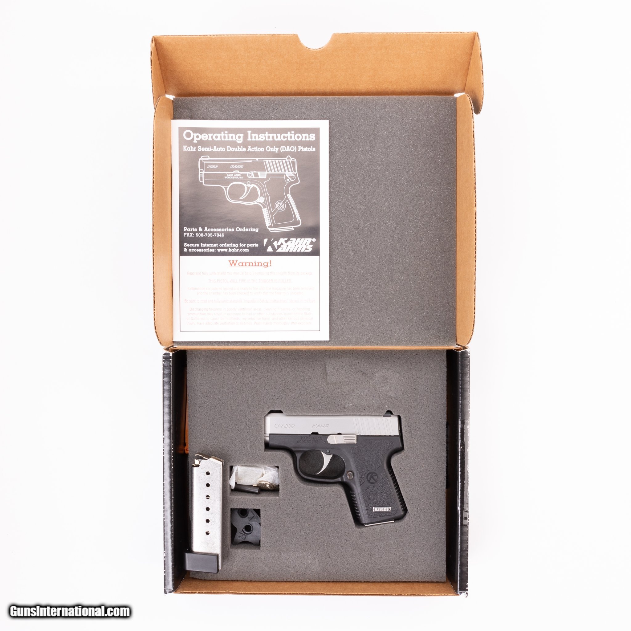 Description: Guns Listing ID: 461667 This Kahr Arms CW380 features fixed sights. It includes the original box, owner‚‚s manual, one 6-round magazine, and one 7-round magazine. Get the best bang for your buck when you get a Certified Used Firearm . When you see the Certified Used stamp on any of our firearms, you can be confident that you‚‚re getting exactly what you want – a gun only in very good to excellent condition and held to the highest quality standard. All Certified Used Guns come with a ‚‚no questions asked‚‚ return policy . PLUS, ALL CERTIFIED USED GUNS SHIP F SOLD Manufacturer: KAHR ARMS Model: CW380 Caliber Info: .380 ACP Condition: Used - Certified Barrels: 2.50 Action: SEMI AUTOMATIC Finish: TWO TONE Weight: 0.6 |