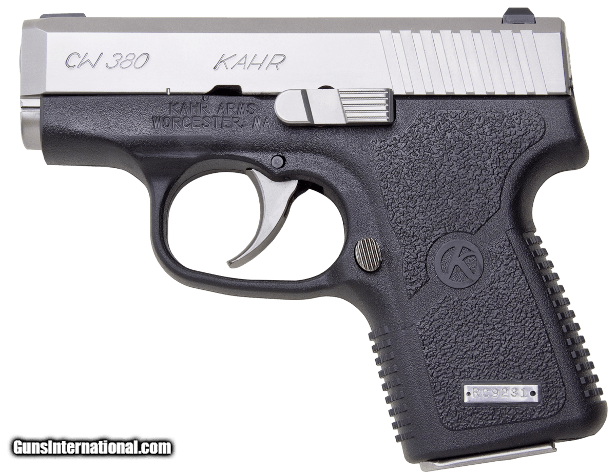 Description: Guns Listing ID: 50909 The Kahr Arms CW is a family of polymer-framed semi-automatic pistols with a stainless steel slide. Barrels are available at 2.6 or 3.6 in length and are adorned with a drift adjustable combat rear sight and a pinned in polymer front sight. As an excellent concealed carry gun textured polymer grips ensure a steady grasp for every shot fired from the CW. Details Caliber .380 ACP - Capacity 61 - Operation Trigger cocking DAO lock breech Browning - type recoil lug passive striker block no magazine disconnect - Barrel 2.58 Conventional Rifling 1 - 16 right-hand twist - Length OA 4.96 - Height 3.9 - Slide Width .75 - Weight Pistol 10.2 ounces (wo magazine) - Grips Textured polymer - Sights Drift adjustable white bar-dot combat rear sight pinned in polymer front sight - Finish Black polymer frame matte stainless steel slide - Magazine 1 - 6 rd Stainless SOLD Manufacturer: KAHR ARMS Model: CW380 Caliber Info: .380 ACP Condition: new Barrels: 2.6" barrel Finish: BLACK AND STAINLESS |