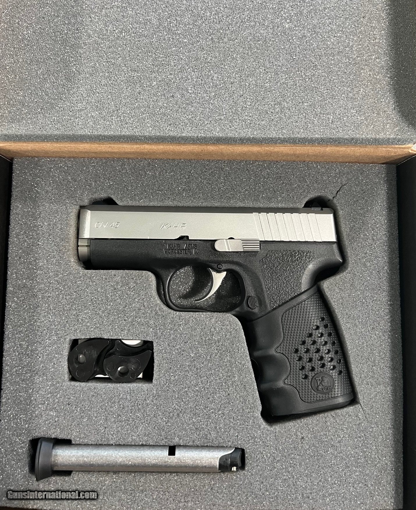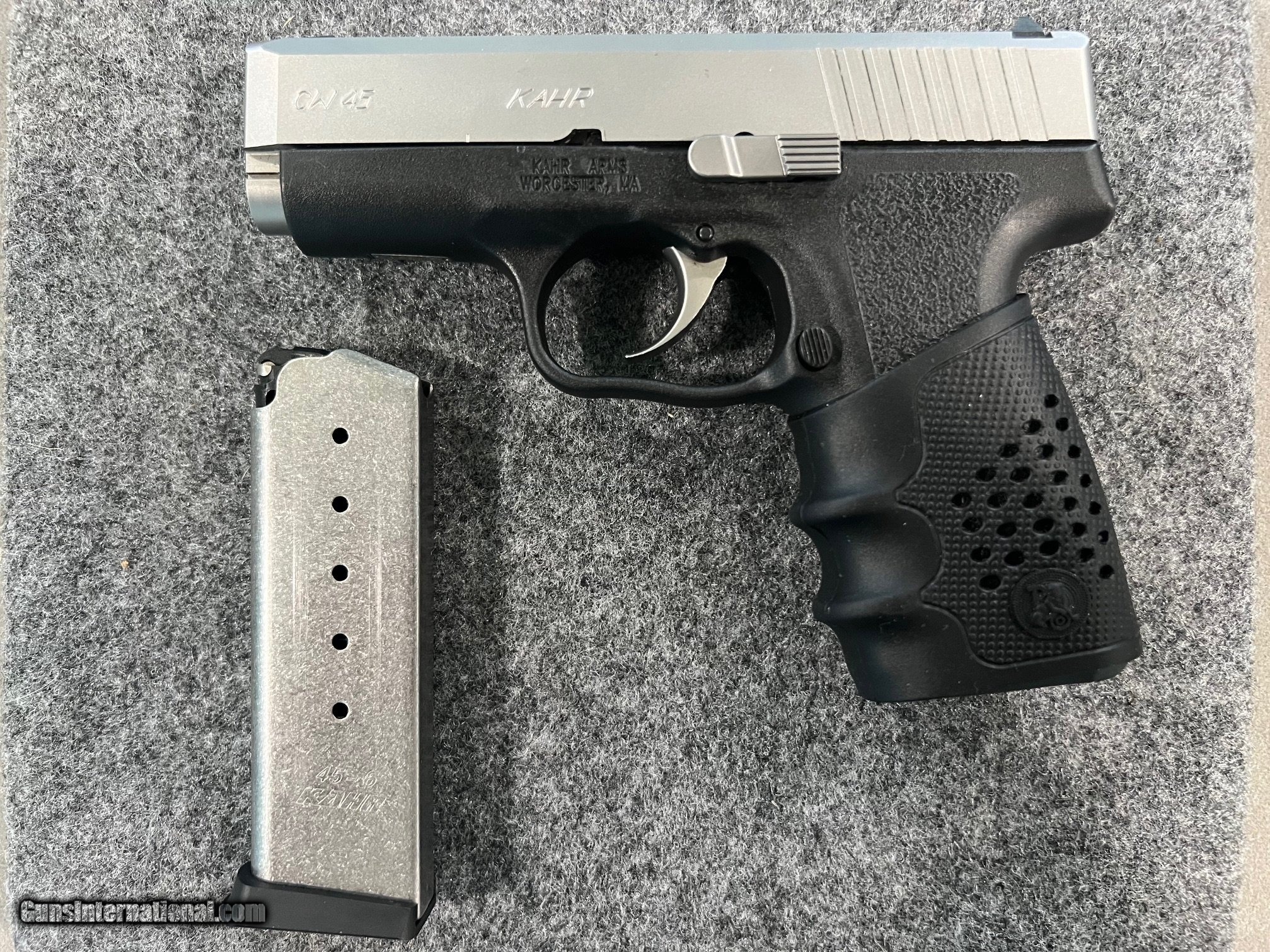 Description: Guns Listing ID: 1347019 Lightly used Kahr CW45 model in two-tone stainless and black poly. Chambered in .45acp, this is an excellent carry piece! Transfers as shown with original box, paperwork, (1) 7rd magazine and rubber grip. SOLD Manufacturer: KAHR ARMS Model: CW45 Caliber Info: .45 ACP Condition: Used - Non-Certified Barrels: 3.5 BARREL Finish: TWO TONE BLACK AND STAINLESS |
