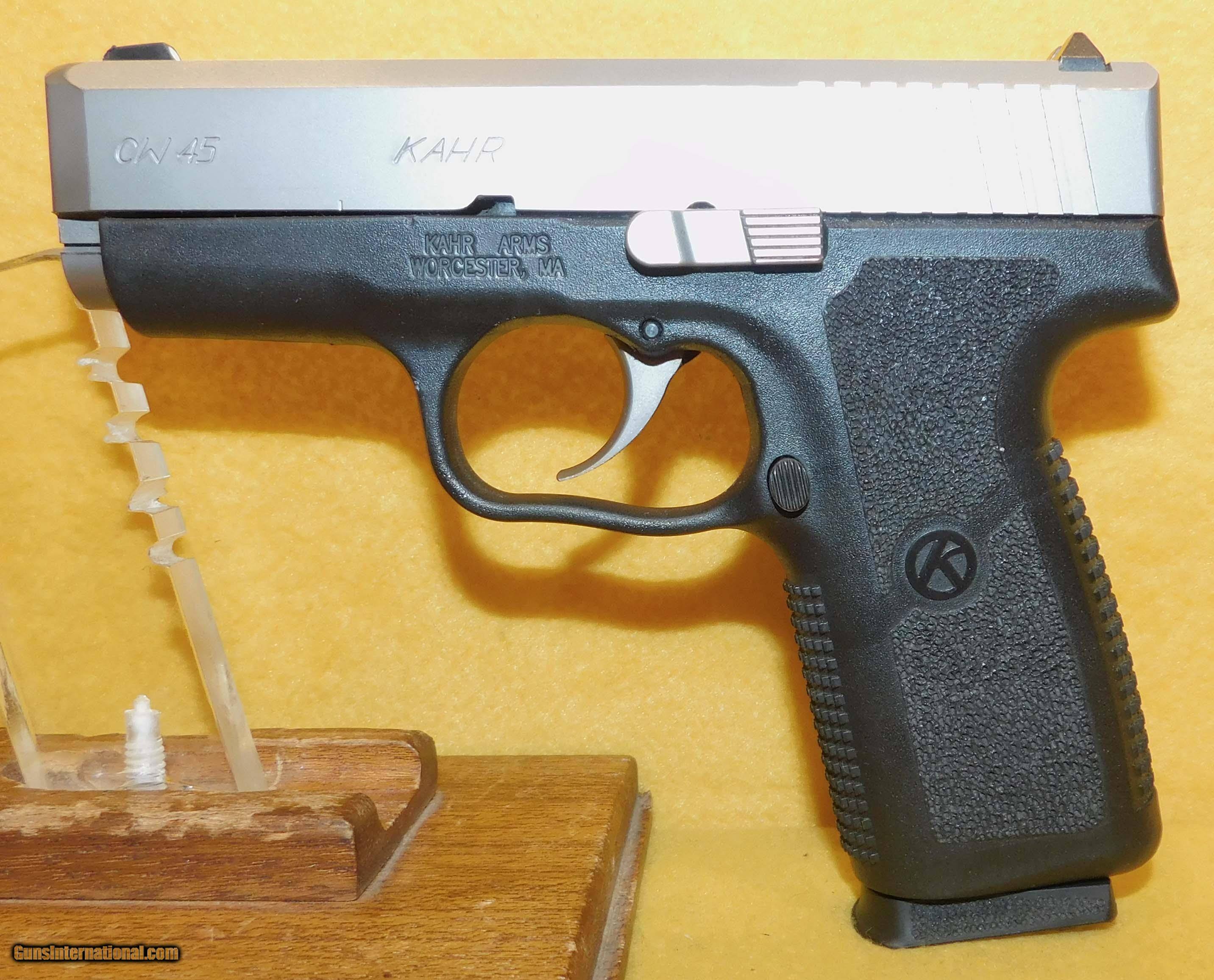 Description: VKAHR ARMS CW45 IN .45 ACP CAL., WITH 3.5" BARREL. COLOR BLACK/SILVER. CONDITION 98%. SERIAL NUMBER SG8666. KAHR ARMS MODEL CW45 IN .45 ACP CALIBER, BRIGHT SHINY BORE, GRIPS EXCELLENT, COMES WITH ONE SINGLE STACK FACTORY MAGAZINE, 98% OVERALL CONDITION, OUR STOCK # D3759 SOLD |