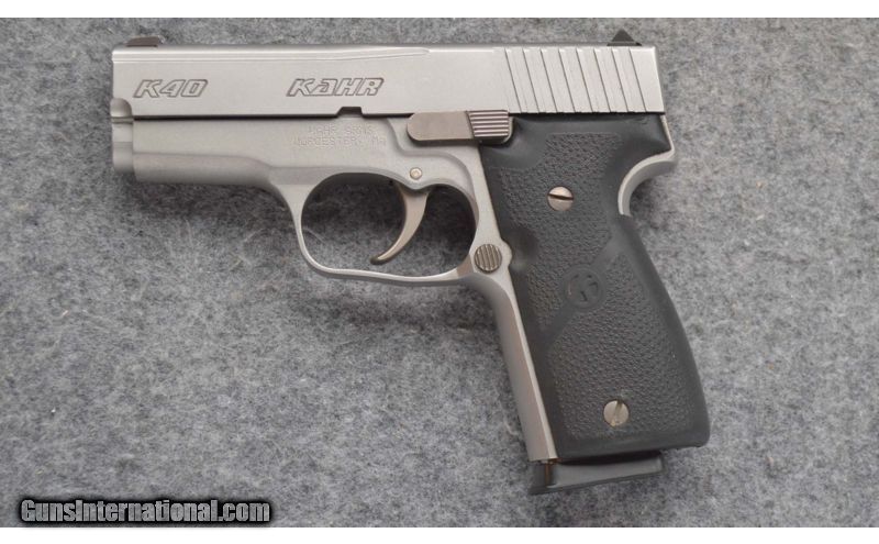 Description: Kahr K 40 with passive striker block, No magazine disconnect, Matte stainless steel finish. SOLD Caliber Info: .40 S&W. Metal Condition: Few noticeable handling marks. Bore Condition: Bright and sharp strong rifling. Barrels: 3.5". Triggers: Trigger cocking DAO. Stock: Wrap around textured soft polymer. Weight: 23 oz. Sights: Drift adjustable, white bar-dot combat sights. Extras: Box. Item Location: Sidney, NE |