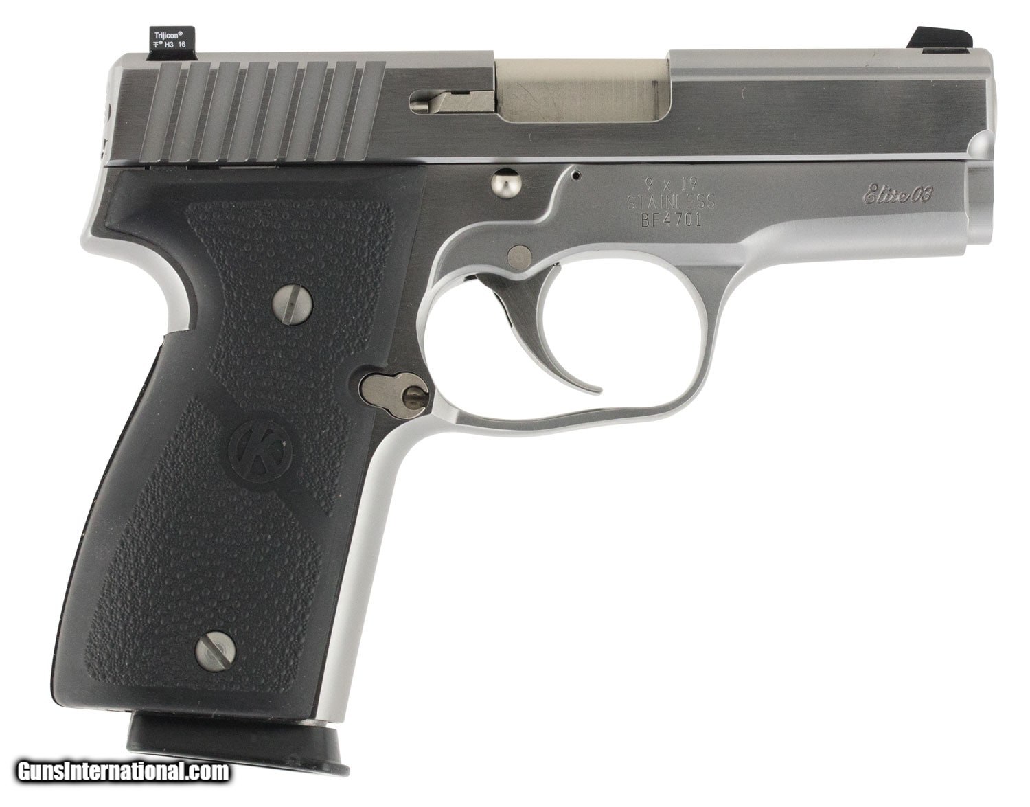 Description: Guns Listing ID: 451669 The Kahr Arms K is a family of chromoly steel framed semi-automatic pistols. A 3.5 steel barrel is adorned with drift adjustable sights. Stainless steel and blackened finishes are both available while the K has textured polymer grips to ensure a steady grasp whenever you need this concealed carry pistol. Details Kahr Arms K9098NA K9 Elite CA Compliant Double 9mm Luger 3.5 71 Black Wraparound Nylon Grip Stainless Steel SOLD Manufacturer: KAHR ARMS Model: K9 ELT Caliber Info: 9MM LUGER (9X19 PARA) Condition: new Barrels: 3.5 BARREL |