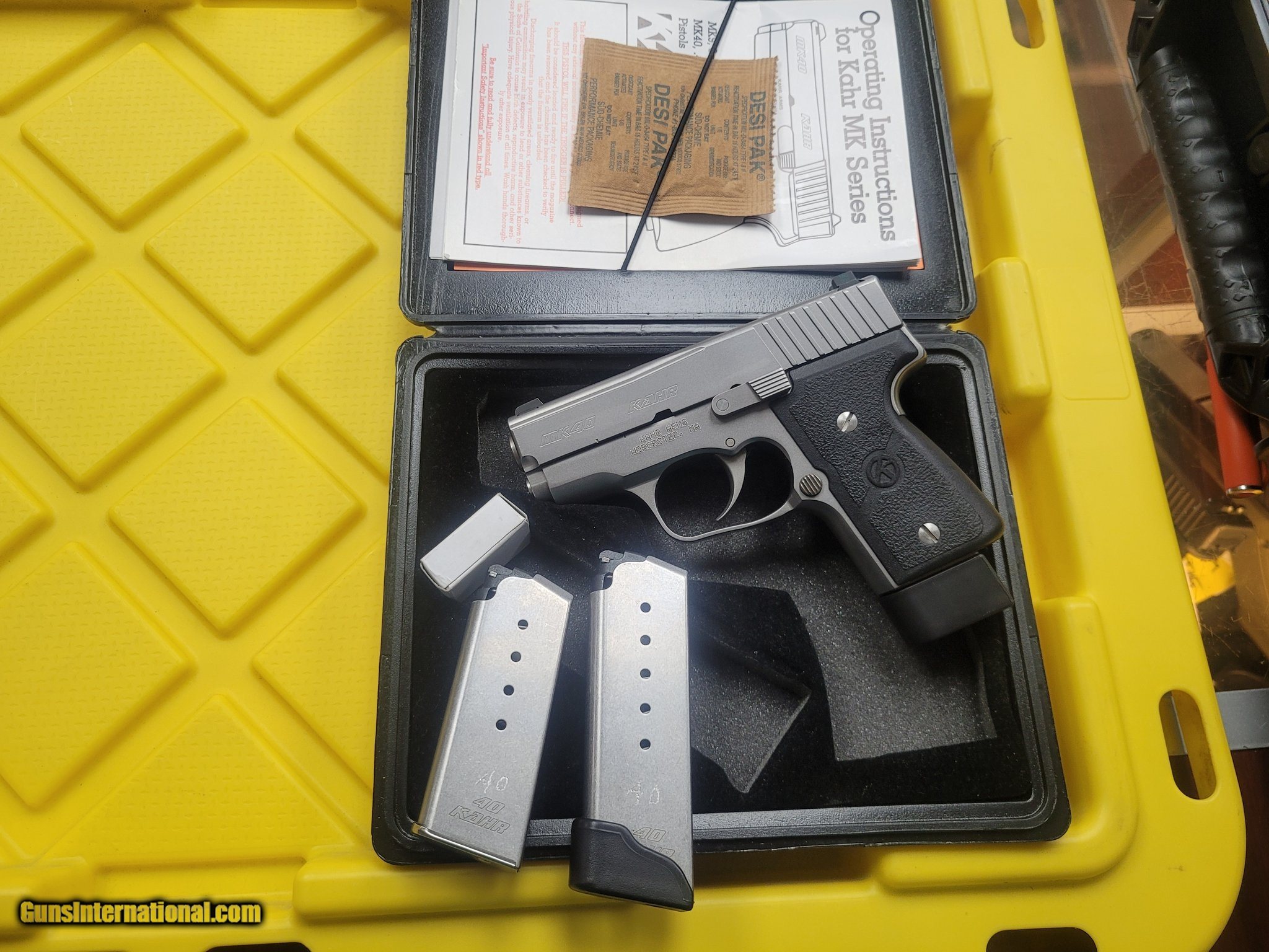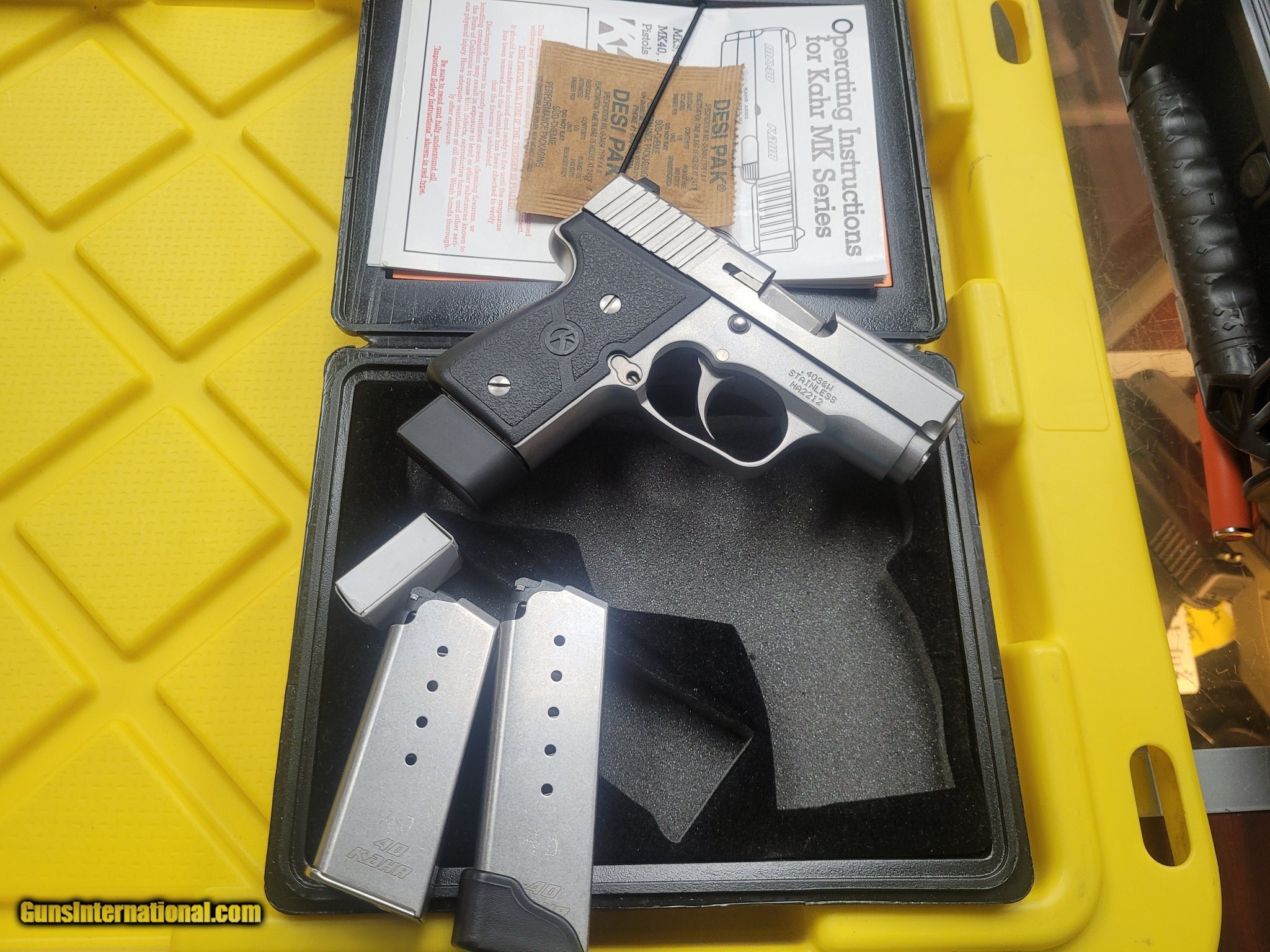 Description: Guns Listing ID: 1359250 This is a pre owned Kahr Arms MK40 stainless steel 40cal handgun w/night sights and box Hard to find 2-6rd mags & 1-5rd mag Gun is in very good condition Kahr Collectors wanted! Don‚‚t miss this one SOLD Manufacturer: KAHR ARMS Model: MK 40 Caliber Info: .40 S&W Condition: Used - Non-Certified Barrels: 3 BARREL Finish: STAINLESS |
