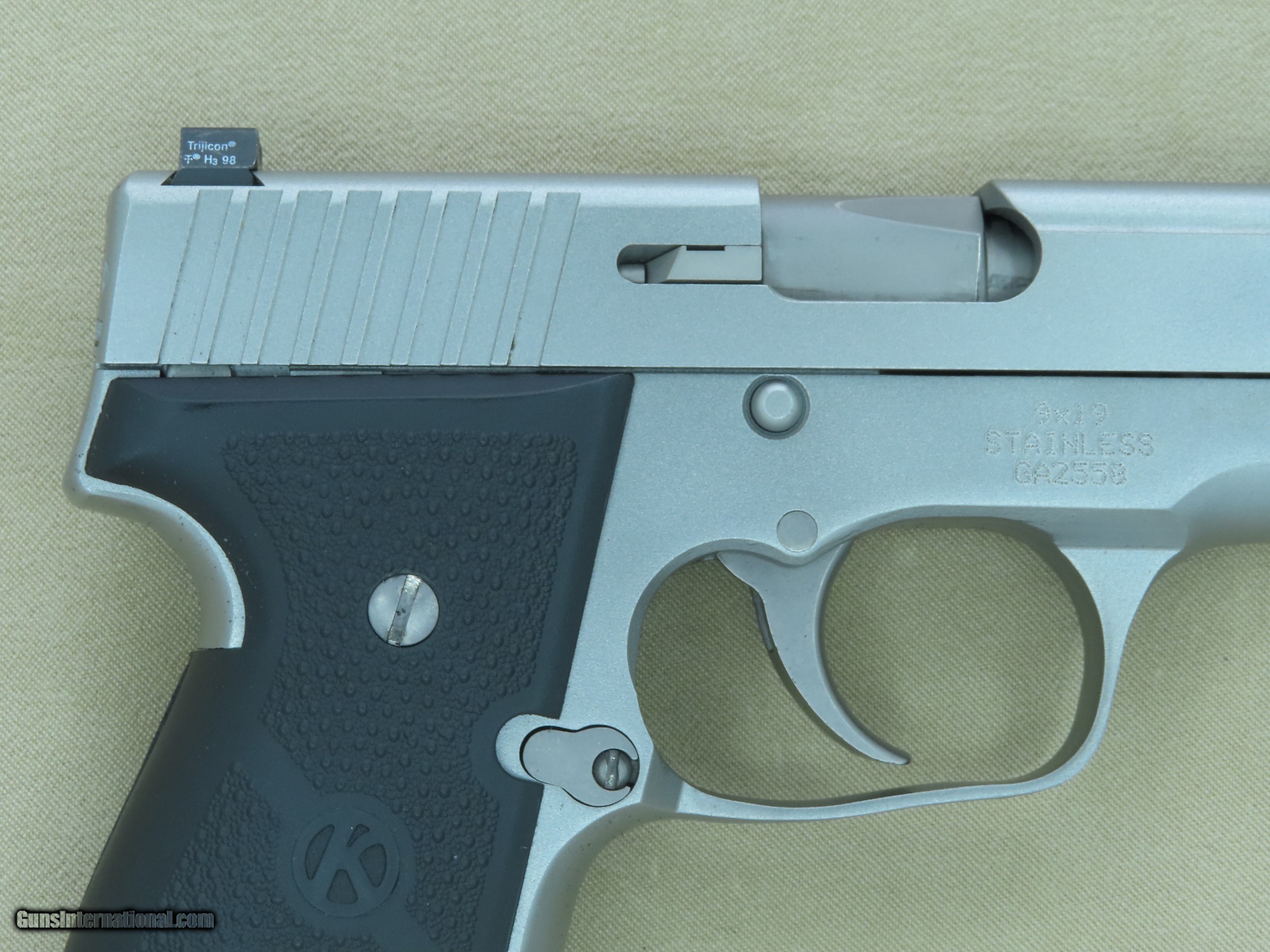 Description: This is a Kahr Arms MK9 Micro Stainless 9mm pistol complete with it's original box, extra magazine, and all of the paperwork it shipped from the factory with. Introduced first in 1998, the compact Kahr MK9 Micro Stainless 9mm pistol is DAO semi-auto pistol with a 3" inch barrel, black rubber grips, factory 3-dot Tritium night sights, and with a magazine capacity of 6 or 7 rounds (extended magazine). The entire stainless steel pistol weighs 24 ounces unloaded and measures 5.5" inches long by 4" inches tall by 1" inch wide. Designed as a concealed carry pistol, the MK9 Micro quickly earned a reputation for being very well made, safe, reliable, and accurate for it's size. This particular example appears to have been made during the first couple years of production hand has lived a VERY easy life, with little to no signs of ever having been carried or even fired since leaving the factory. The exterior is exceptionally clean rating 98% plus, with no visible wear or damage outside of a few tiny handling/storage marks that are only visible under close inspection. All of the factory markings are crisp and clear, and the bore is mirror-bright and perfect with no visible imperfections or erosion. This pistol was fitted with the optional factory Tritium night sights which look like-new but no longer glow in the dark due to age. The factory textured rubber grips are are in like-new condition as well, free from any visible wear, tears, repairs, or damage of any kind. The slide-to-frame fitment is superb, and the action is both slick and precise. All of the controls are in perfect working order, and we have no doubt that it will function just as perfectly today as the day it left the factory more than 20 years ago. This Kahr MK9 Micro Stainless pistol comes with it's original serial-numbered plastic case as well as all of the factory paperwork and 2 factory magazines (6 and 7 rounds). If you have been looking for a well-made and reliable compact concealed carry pistol this Kahr would be an excellent choice. Also of note, we have a set of new-old-stock Crimson Trace laser grips available for this pistol for an additional charge. SOLD Handgun Caliber: 9x19mm Parabellum (9mm Luger, 9x19mm NATO) Manufacturer: Kahr Arms Model: MK9 Micro Stainless Serial Number: GA2558 Barrel Length: 3" Inches Condition: Excellent Metal Condition: Excellent Bore Condition: Minty Action: Semi-Auto Finish: Stainless Steel Extras: w/ Original Box, Manual, Extra Magazine, Etc. |