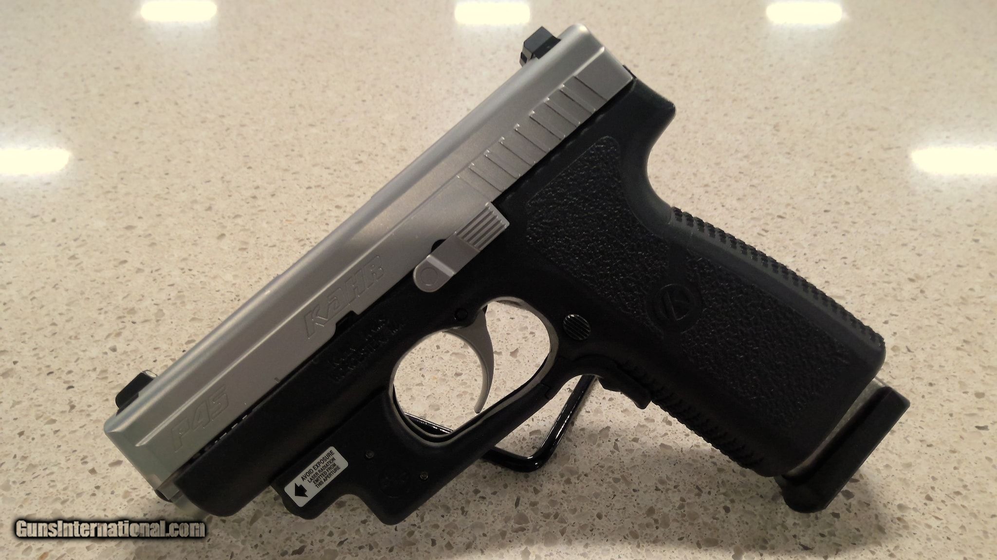 Description: Guns Listing ID: 1123390 VERY GOOD CONDITION KAHR ARMS P45 .45ACP 6+1 RD CAPACITY 3.54\" BARREL LENGTH. COMES WITH TRIGGER GUARD MOUNTED CRIMSON TRACE LASER, 7 MAGAZINES AND ORIGINAL BOX. SOLD Manufacturer: KAHR ARMS Model: P45 Caliber Info: .45 ACP Condition: Used - Non-Certified Barrels: 3.54 BARREL Finish: STAINLESS & BLACK |