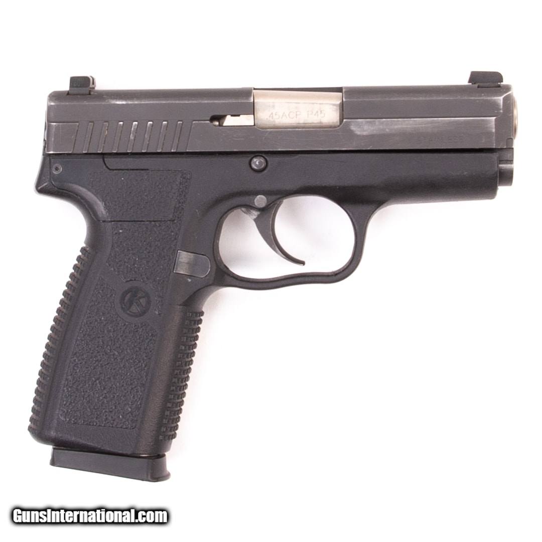 Description: Guns Listing ID: 1196393 This Kahr Arms features two 7-round magazines, one 6-round magazine and night sights. SOLD Manufacturer: KAHR ARMS Model: P45 Caliber Info: .45 ACP Condition: Used - Non-Certified Barrels: 3.5 BARREL Finish: BLACK |