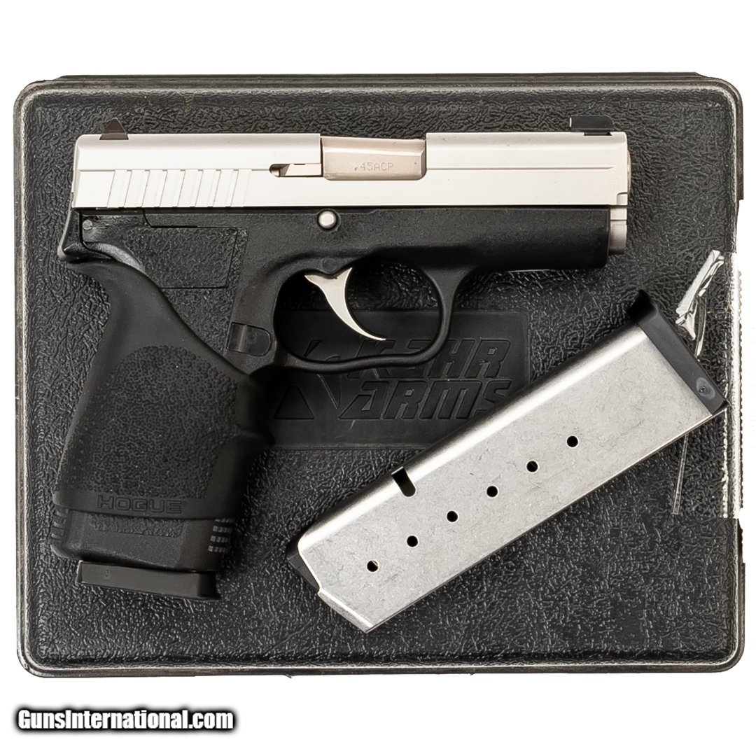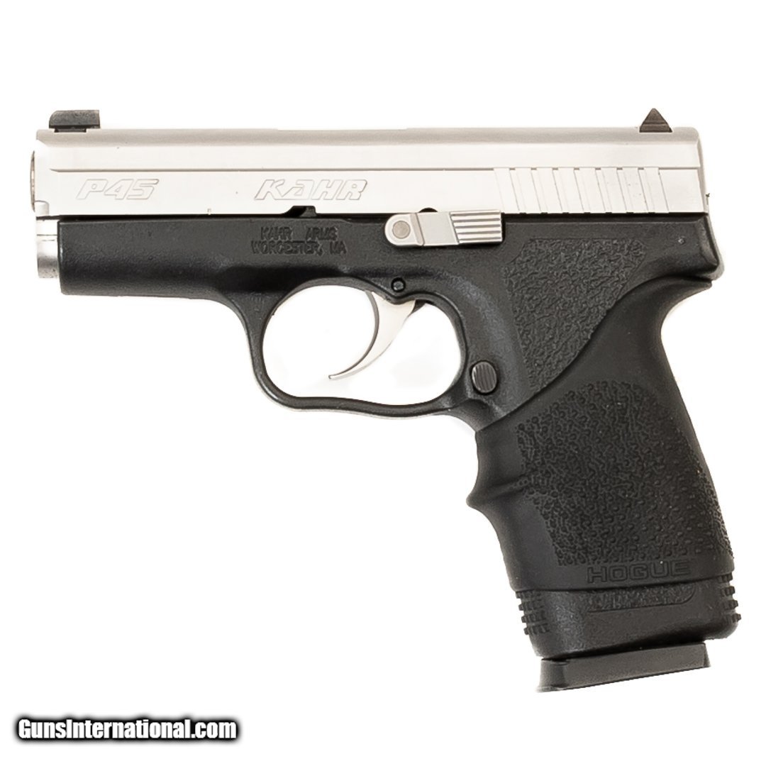 Description: Guns Listing ID: 486666 This Kahr Arms pistol comes with one 7-round magazine, one 6-round magazine, the original case, owner‚‚s manual, a Hogue slip on grip and is equipped with a front night sight. Get the best bang for your buck when you get a Certified Used Firearm . When you see the Certified Used stamp on any of our firearms, you can be confident that you’re getting exactly what you want – a gun only in very good to excellent condition and held to the highest quality standard. All Certified Used Guns come with a ‘no questions asked’ return policy . PLUS, ALL CERTIFIED USED GUNS SHIP FREE SOLD Manufacturer: KAHR ARMS Model: P45 Caliber Info: .45 ACP Condition: Used - Certified Barrels: 3.50 Action: SEMI AUTOMATIC Finish: stainless Weight: 1.4 |