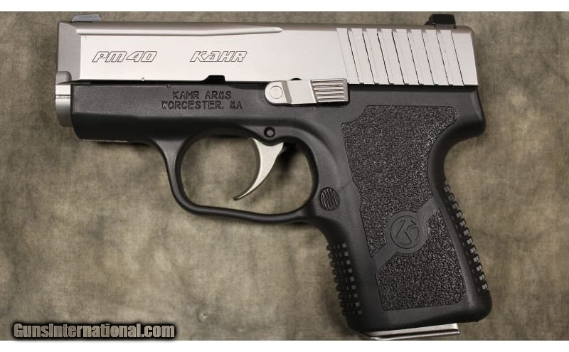 Description: The concealed carry Kahr PM40 is a .40 S&W single-stack double action only (DAO) striker-fired semi-automatic. PM stands for "polymer micro". Obviously, the black frame is polymer construction and lightweight. The gun is impressively small and wrapped around a 3.1" barrel with polygonal rifling and a 1:16 RH twist ratio. The gun ships with either a trio of 5-round flush-mount or three 6-round finger-extension magazines. Capacity is thus 5+1 or 6+1. The gun is all black: a matte black frame and a blackened stainless-steel slide. The gun is only 5.47" long. It's 4.0" tall, and the slide is made of 416 steel bar stock. Thanks to the single-stack grip architecture, the PM40 cheats the calipers of a full inch and measures just .94" wide. Not surprisingly, with the polymer frame and small dimensions, the gun is light. Very light. It's only 15.8 ounces, and the stainless steel magazines only weighs 1.9 ounces. They also have counting holes, which is always a nicely appreciated touch. Atop the blackened stainless steel slide you'll find drift-adjustable tritium night sights. The hammerless Kahr is designed for easy and reliable snag-free operation. Trigger pull weight is 7.0 pounds. Pull the trigger and there's a short recoil operation to ready the next round. There's also a passive striker block but no magazine disconnect. The grip flanks are textured polymer while front and back are nicely stippled. The trigger guard has a tilt up toward the muzzle. It's a modified oval that cinches a bit above and below the trigger giving the gun a unique profile. Who would think that the founder, designer and brains behind Kahr is none other than Justin Moon, a son of the late Reverend Sun Myung Moon? The company is headquartered in Greeley, Pennsylvania and production is 200+ miles east in Worcester, Massachusetts. Kahr emphasizes advanced computer utilization, CAD/CAM, 3D modeling and precise CNC machining with utmost quality in mind. The polymer micro Kahr PM40 is part of Kahr's premium series, which includes three magazines and a lockable hard plastic case. .40 S&W SOLD Chambers: .40 S&W Metal Condition: Good Wood Condition: Polymer Condition Good Bore Condition: Very Good Barrels: 3 Weight: 4 lbs Item Location: Nashville, TN |