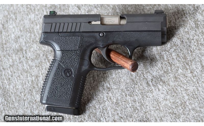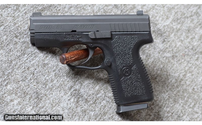 Description: Kahr's PM45 represents one of the highest quality, ultra thin, pocket carry handguns on the market today. Building on the success of the polymer framed P series pistols, Kahr's PM45 reduces the size even further. Each PM45 features a Lothar Walther 3.2", polygonal rifled, match grade barrel, and a shorter frame than P series pistols. The recoil reducing design features and smooth double-action only trigger make the PM45 exceptionally easy to shoot. It includes a blackened stainless slide and night sights. This Kahr PM45 is in excellent condition and comes with three 5-round magazines. .45 ACP SOLD Metal Condition: Excellent Bore Condition: Excellent Barrels: 3.2 Triggers: Double Action Only Weight: 17 oz Sights: Meprolight Tru-Dot tritium pistol sights Item Location: Boise, ID |