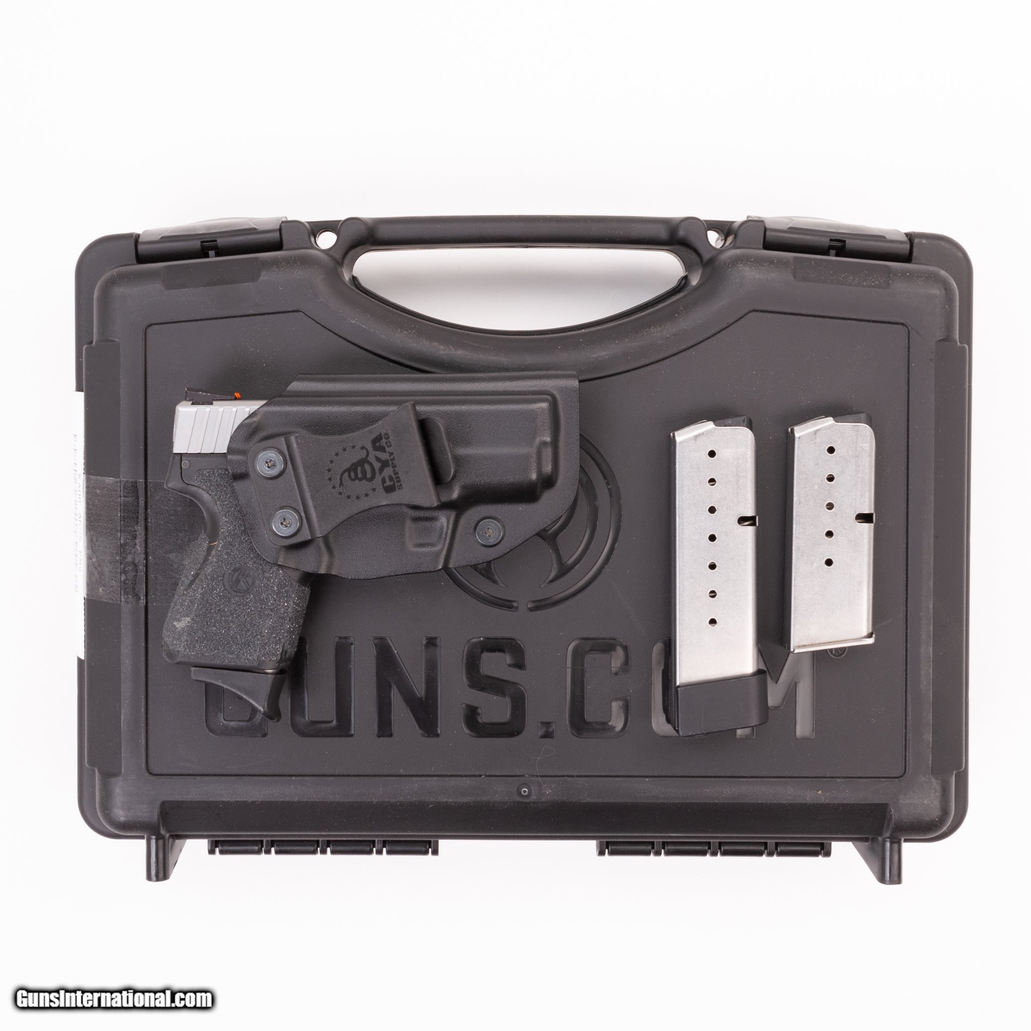 Description: Guns Listing ID: 471295 This Kahr Arms PM9 features textured grip tape and red fiber optic sights. Purchase includes two 6-round magazines, one 8-round extended magazine, and a right-handed IWB CYA Supply Co. holster. Get the best bang for your buck when you get a Certified Used Firearm . When you see the Certified Used stamp on any of our firearms, you can be confident that you‚‚re getting exactly what you want – a gun only in very good to excellent condition and held to the highest quality standard. All Certified Used Guns come with a ‚‚no questions asked‚‚ return policy . PLUS, ALL CERTIFIED USED GUNS SHIP FR SOLD Manufacturer: KAHR ARMS Model: PM9 Caliber Info: 9MM LUGER (9x19 PARA) Condition: Used - Certified Barrels: 2.90 Action: SEMI AUTOMATIC Finish: TWO TONE. BLACK/SILVER Weight: 0.8 |