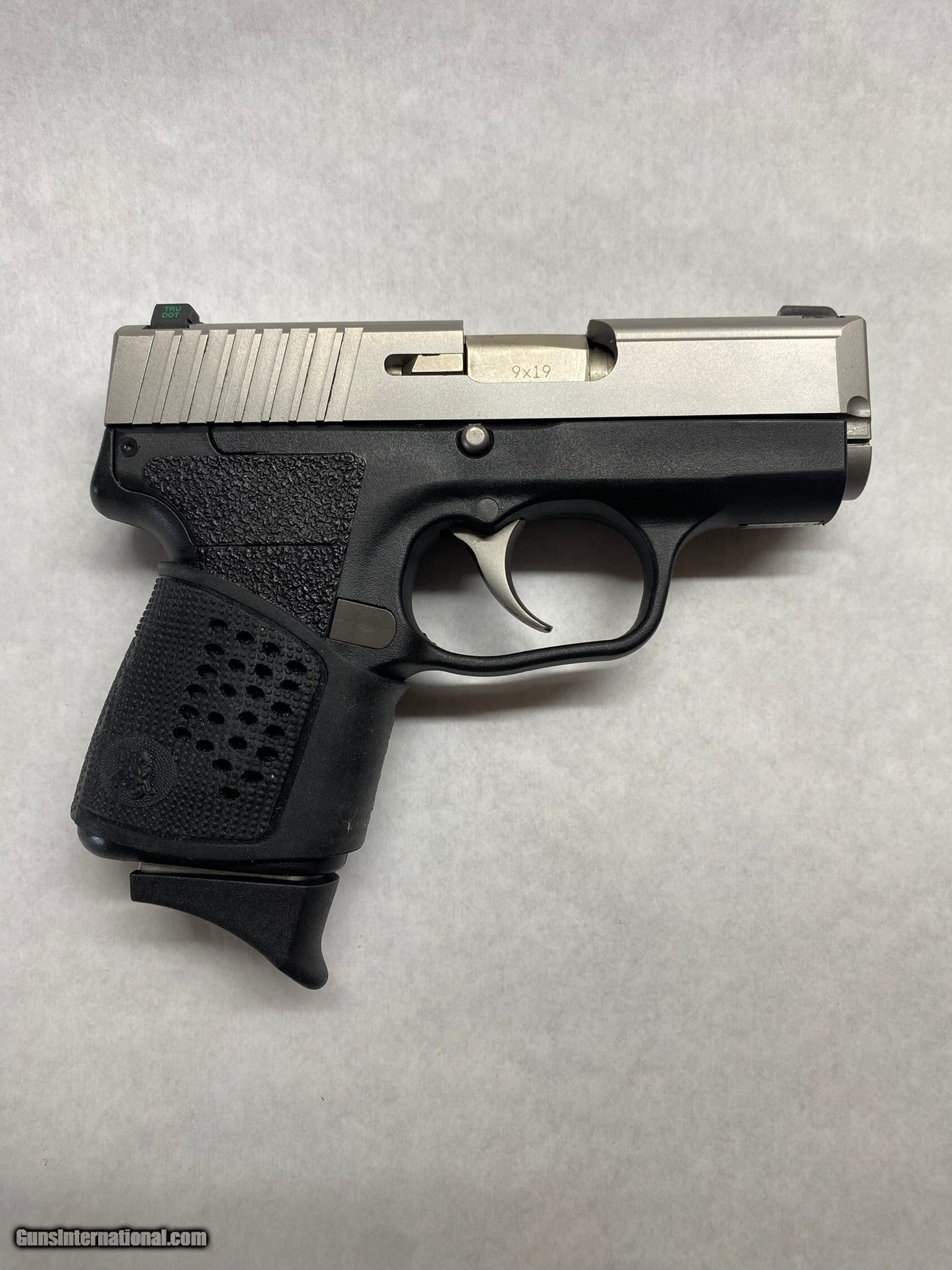 Description: Guns Listing ID: 571222 Kahr Arms PM9 Pistol in nice condition. Includes 1 7rd magazine, 1 6rd magazine w/ pinky extension, original floorplate and an extra pinky extension, pachmayr slip on grip, and right handed IWB holster. Tru Dot 3-dot night sights are dim but still show a little life. Nice shape overall, good shooter. SOLD Manufacturer: KAHR ARMS Model: PM9 Caliber Info: 9MM LUGER (9x19 PARA) Condition: Used - Non-Certified Barrels: 3" BARREL Action: SEMI AUTOMATIC Finish: TWO TONE BLACK AND STAINLESS |