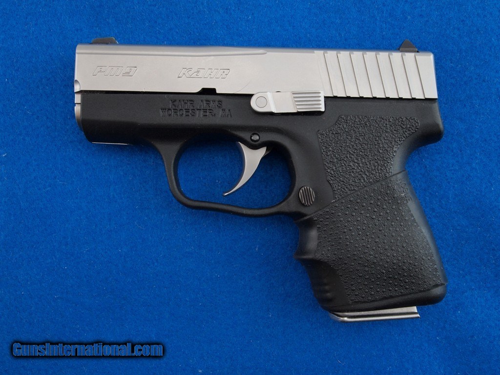 Description: KAHR ARMS PM9 9MM WBox, 3" bbl, bright shiny bore, good rifling, Stainless Steel slide finish, black textured polymer frame, dovetail squarenotch rear sight with one white square, white dot front sight, and one 5 round magazine. Add 3% for Credit Card Shipping $25.00 SOLD |
