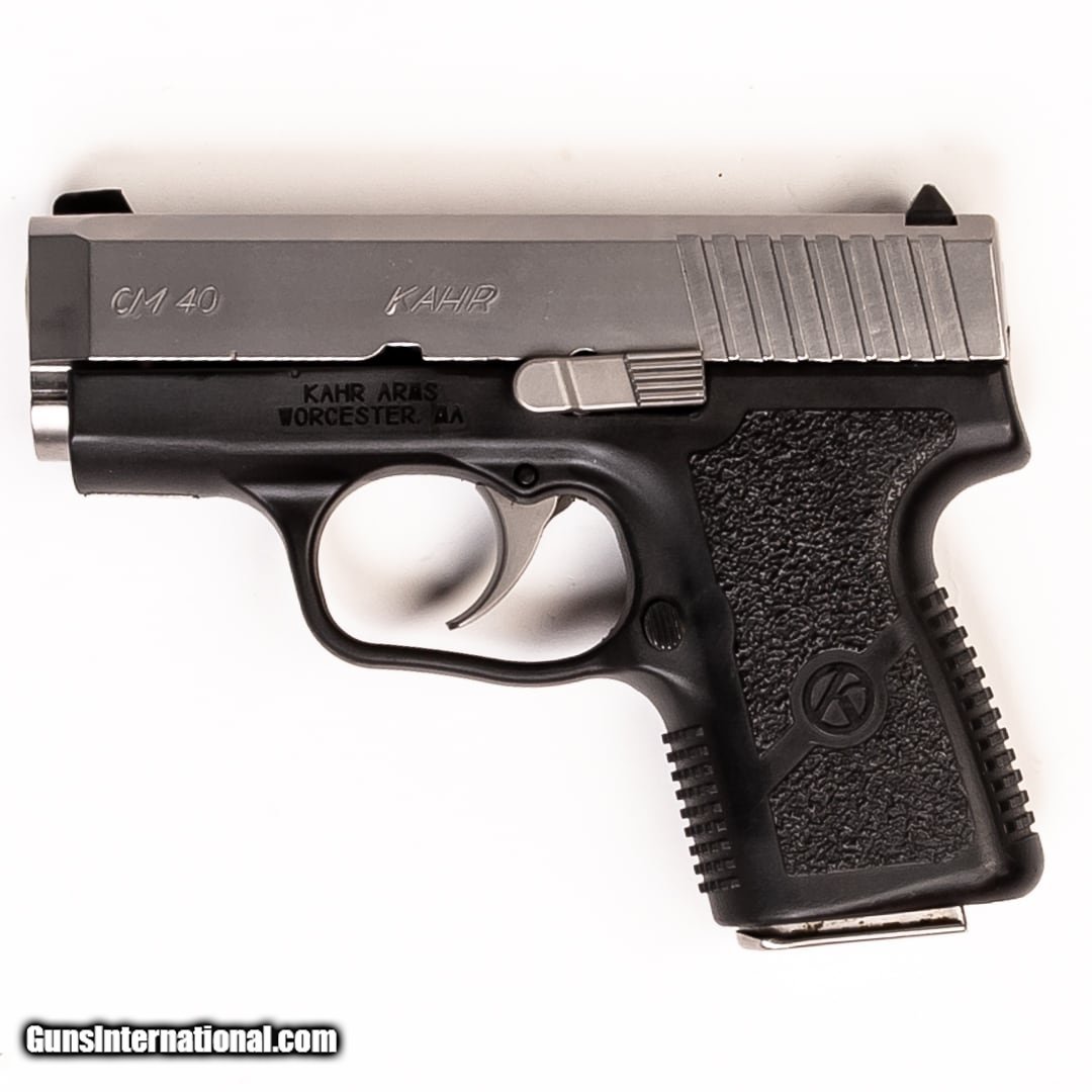 Description: Guns Listing ID: 482730 The Kahr Arms CM40 is a compact handgun designed for personal protection. It‚‚s chambered in 40 S&W and features a high textured polymer frame that‚‚s thin and easy to conceal. This CM40 includes the original box, manual, and four 6-round magazine SOLD Manufacturer: KAHR Model: CM40 Caliber Info: .40 S&W Condition: Used - Certified Barrels: 3 BARREL Finish: TWO-TONE STAINLESS |